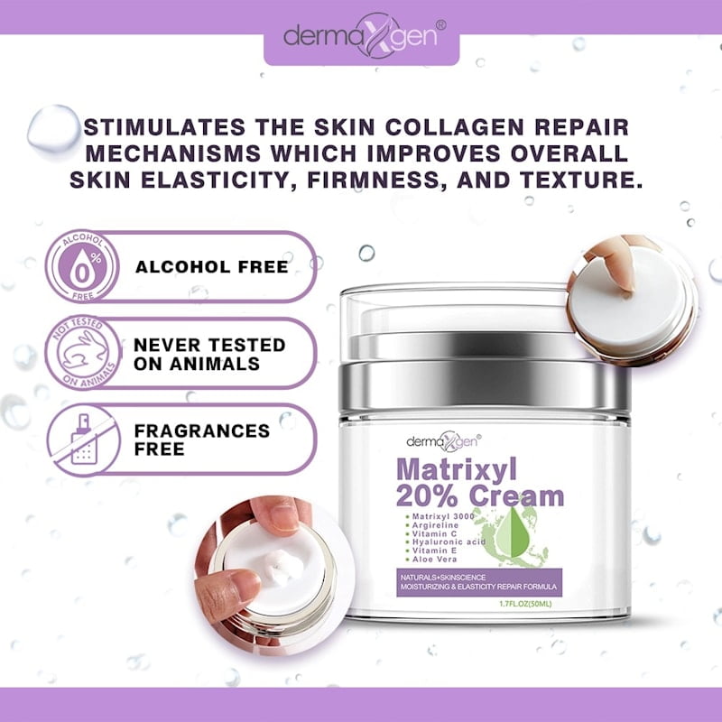 - Accelerates collagen production, repair & restore the elasticity of the skin. Matrixyl 3000 deeply moisturizes to Hydrate Dry, Dull Skin and protect skin from daily, & all combination of natural ingredients 100% ORGANIC.