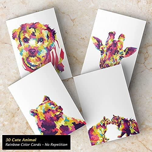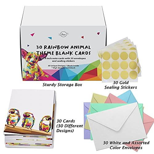 - 30 DIFFERENT RAINBOW ANIMAL BLANK NOTECARDS WITH ENVELOPES: Each of our 4×6 inch blank note cards is beautifully designed with its own rainbow color animal theme design – there are no duplicates