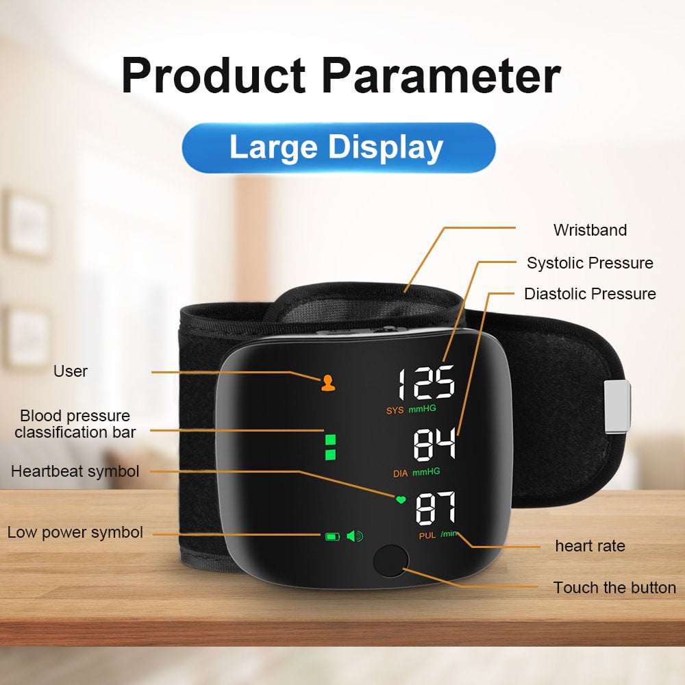 Wrist Blood Pressure Machine Large LCD Display, Rechargeable Blood Pressure Monitor Kit with Adjustable Bp Cuff