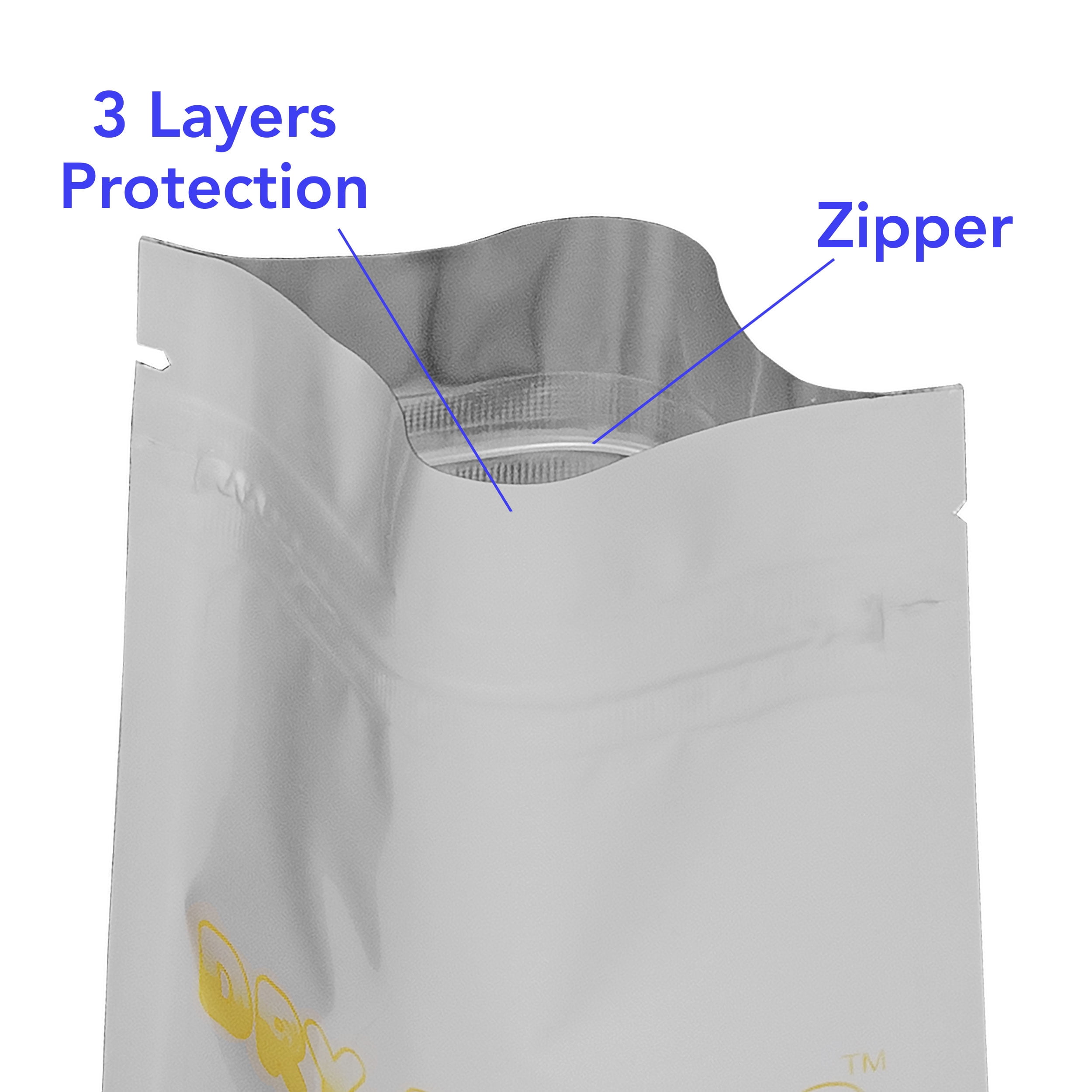 These Dry-Packs Moisture Barrier Bags with Static Shielding are made from multiple layers of metalized polyester and dissipative polyethylene, making them durable and secure for whatever items you might be shipping or storing. The flexible structure makes it easy to vacuum seal and is resealable with a built-in zipper, effectively sealing out moisture or any other damaging factors. Bag walls are 5 mils thick. Outer dimensions are 6.19" x 3.31". Inner dimensions are 5.00" x 3.00". The space between zipper and top is 0.55" to allow heat sealing if desired. Includes 20 bags. Also includes 20 packets of 1/2 gram cotton Silica Gel.