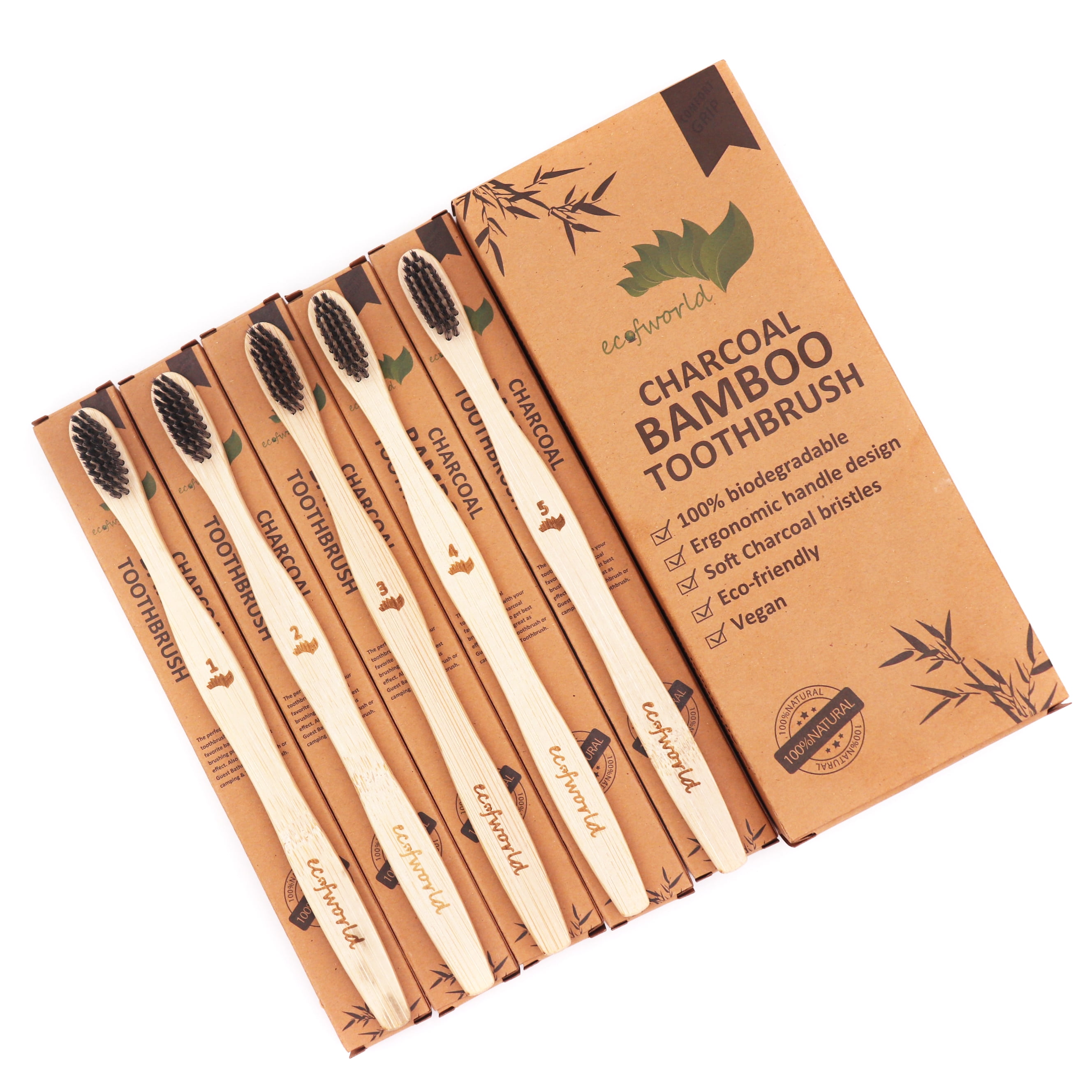 BIODEGRADABLE, ECO-FRIENDLY NATURAL BAMBOO TOOTHBRUSH ECOFWORLD bamboo toothbrushes will help reduce plastic waste and retain your odorless smile. Our Ultra Soft Bamboo Adult toothbrush meets USDA qualities and its certified. Easy to dispose. Easy to Distinguish – toothbrushes labelled with numbers so that the toothbrushes are identified by number and they are not mixed up. Superior Quality – our bamboo toothbrushes are made of 100% natural bamboo, smooth and gentle to your gums.Gum, Teeth and Tongue Gentle Bristles – The bristles are made of high-quality charcoal induced nylon, ideal hardness and won’t fall off, which can deeply clean your mouth.