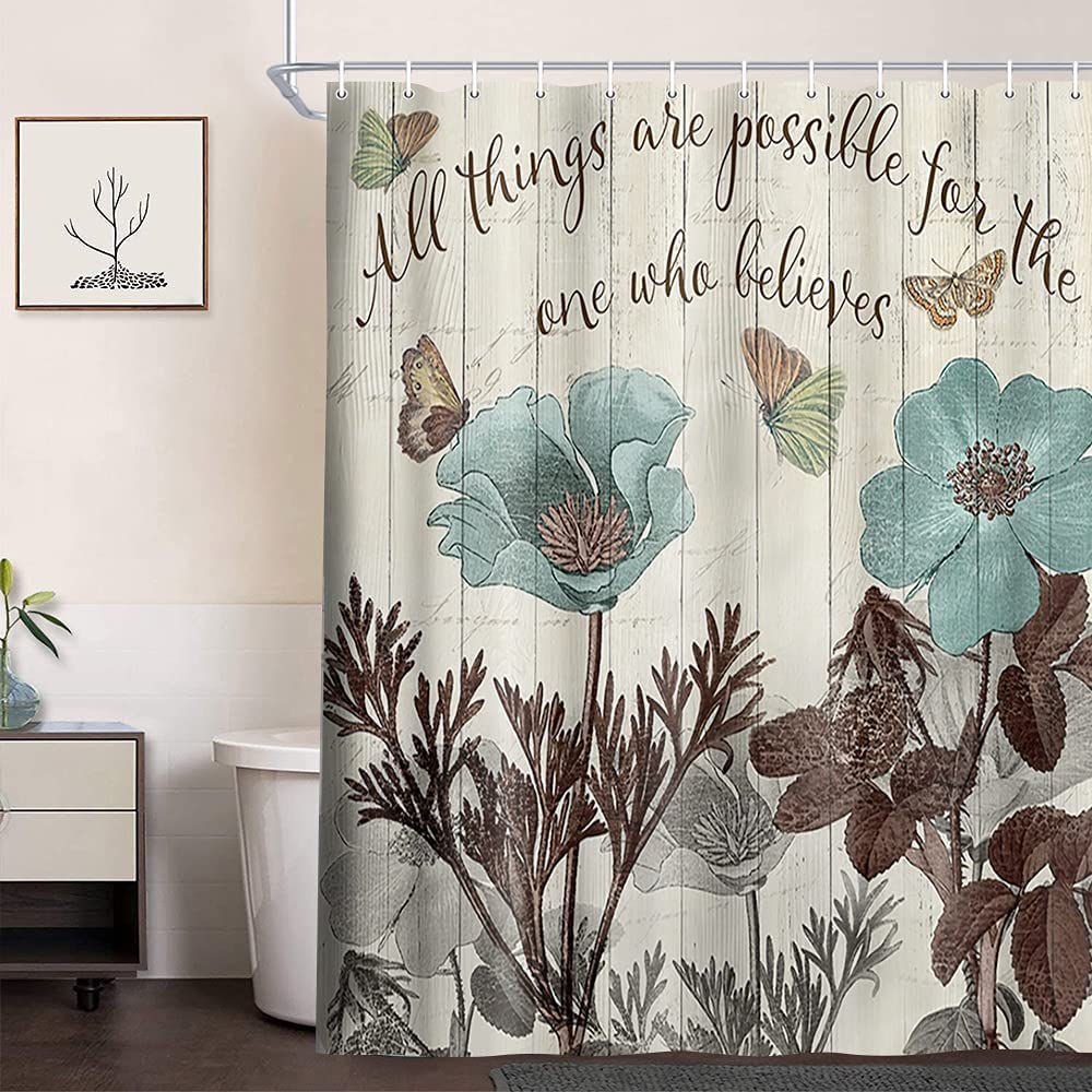 We are a brand that specializes in the production of home and bathroom products. We offer a variety of patterns, shower curtains for various themes, bathroom mats , shower curtain set, tapestry , kitchen curtains and more. NOTICE: 1. There is 2-3% difference according to manual measurement. 2.Please check the measurement chart carefully before you buy the item.(1 inch = 2.54 cm) 3.Package Included: 1pcs shower curtain and free plastic hooksElegant Teal Tulip Shower Curtain, Rustic Brown and Teal Fabric Bath Curtains, Waterproof Polyester Vintage Farmhouse Floral Flowers on Retro Beige Wooden Washroom Bathroom Accessory Sets