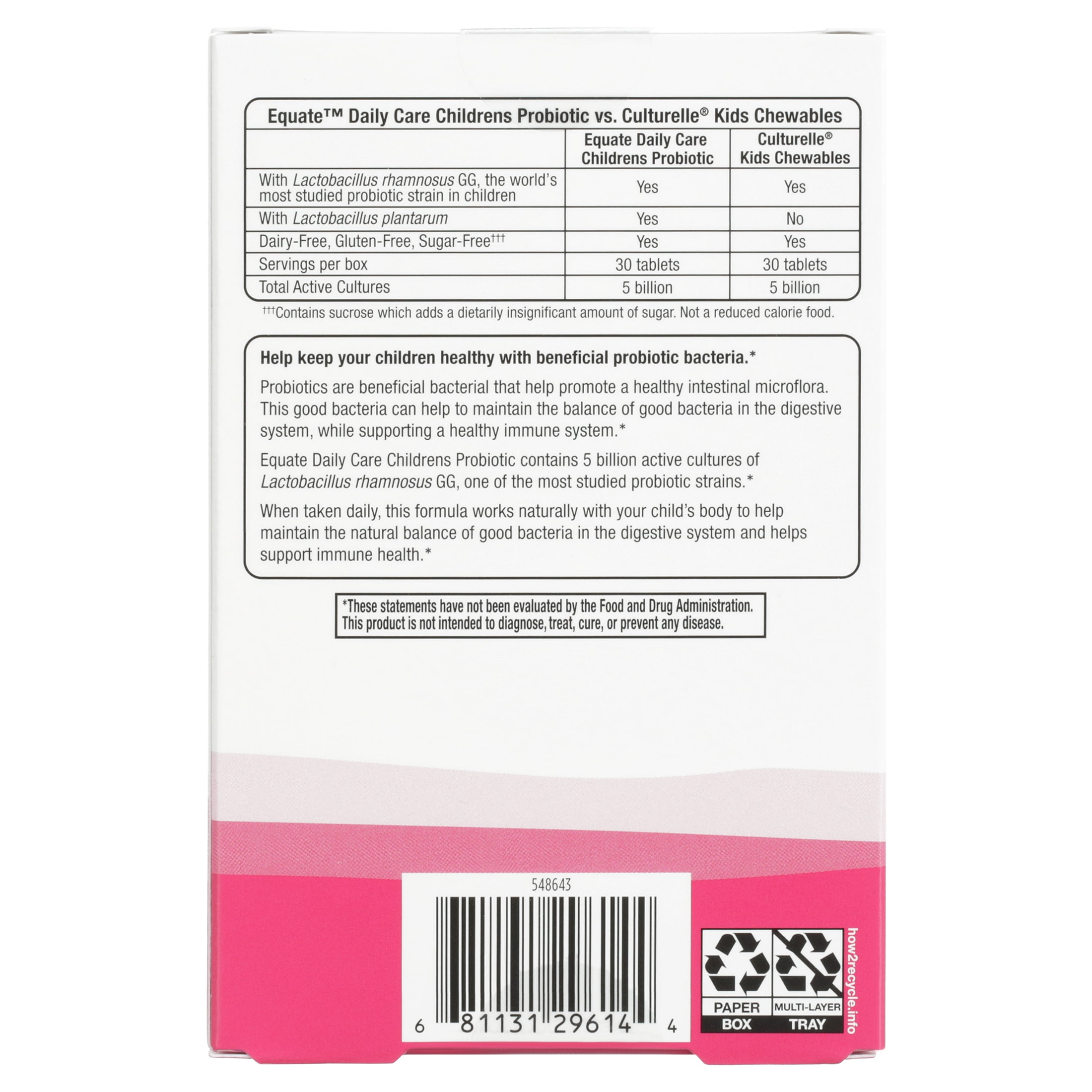 Equate Children’s Probiotic Dietary Supplement Tablets, Berry, 30 Count