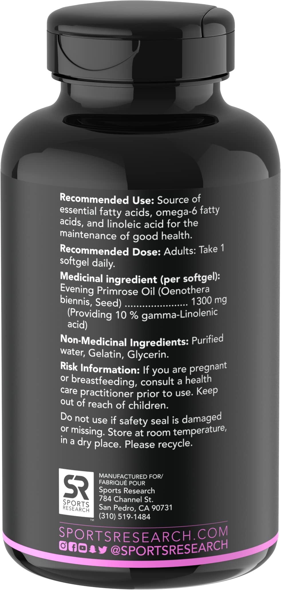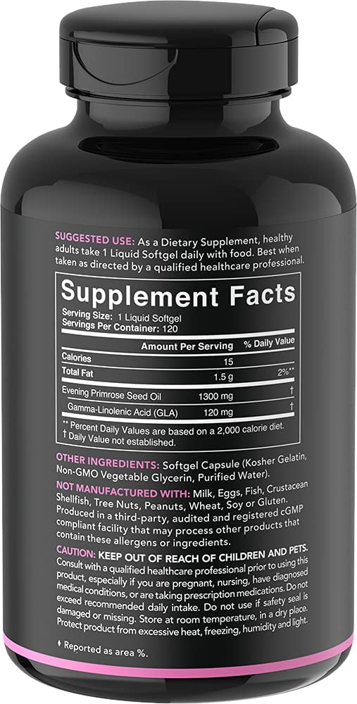 - 1300mg of Cold-Pressed Evening Primrose Oil with 10% GLA per liquid softgel.