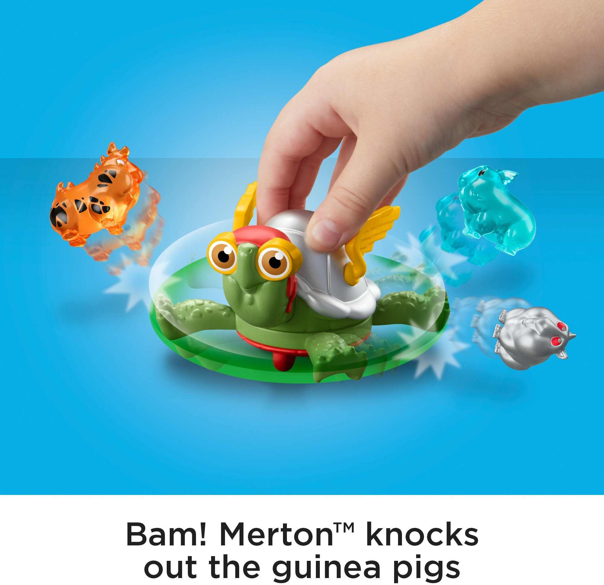 Young crimefighters can recreate the awesome action of the DC League of Super-Pets movie with this Fisher-Price figure set featuring Merton the Turtle. When three of Lulu’s villainous guinea pigs launch an attack, kids can stop them in their tracks by rolling Power Spin Merton forward to see her legs and tail spin around, knocking those guinea pigs down. Wham!
