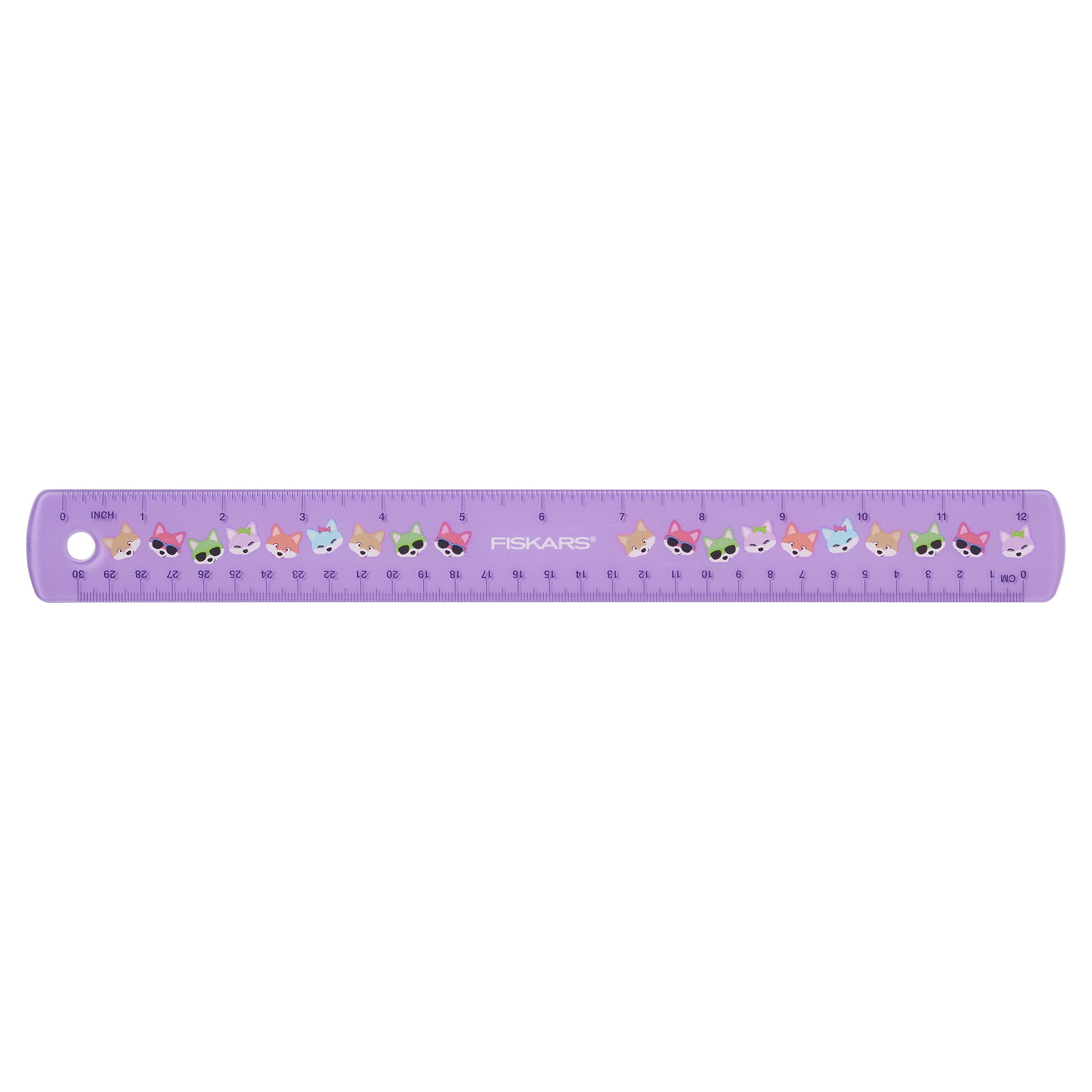 Fiskars Designer Kids 3-Piece Set features 5" Non-stick Pointed Kids Scissors (Ages 4+), a 12" Ruler, and a Flip Sharpener, all in a fun purple with foxes design that children love. The scissors have safety-edge stainless steel blades with non-stick coating for cutting through sticky classroom materials. The Ruler is made of shatter-resistant plastic and offers inch and centimeter marks. The Flip Sharpener makes it easy to sharpen pencils and crayons without creating a mess. Simply slide the cover over to sharpen, then replace the cover to trap shavings inside.