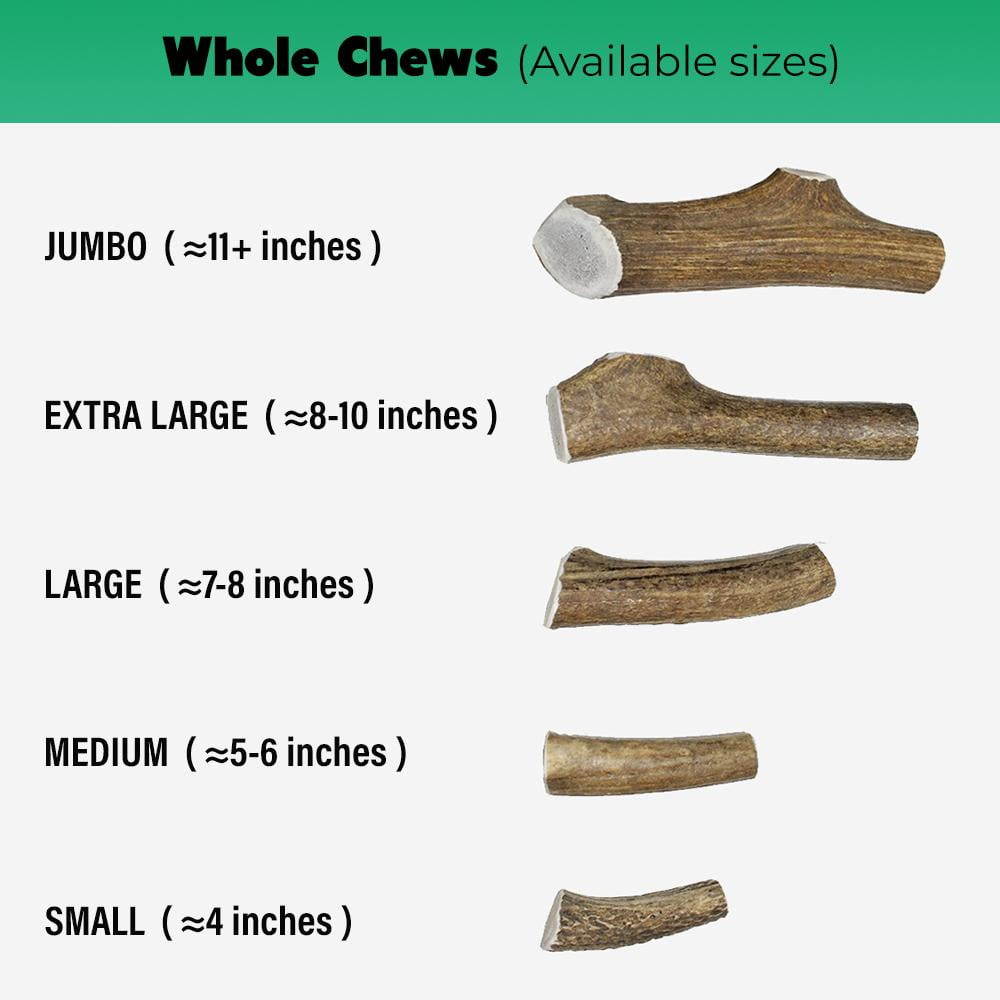 - ✅ MULTIPLE SIZES AVAILABLE: Choose the right size for your pets! We have designed these exciting elk antlers for dogs in 5 different lengths. Small, Medium, Large, Extra Large and Jumbo.