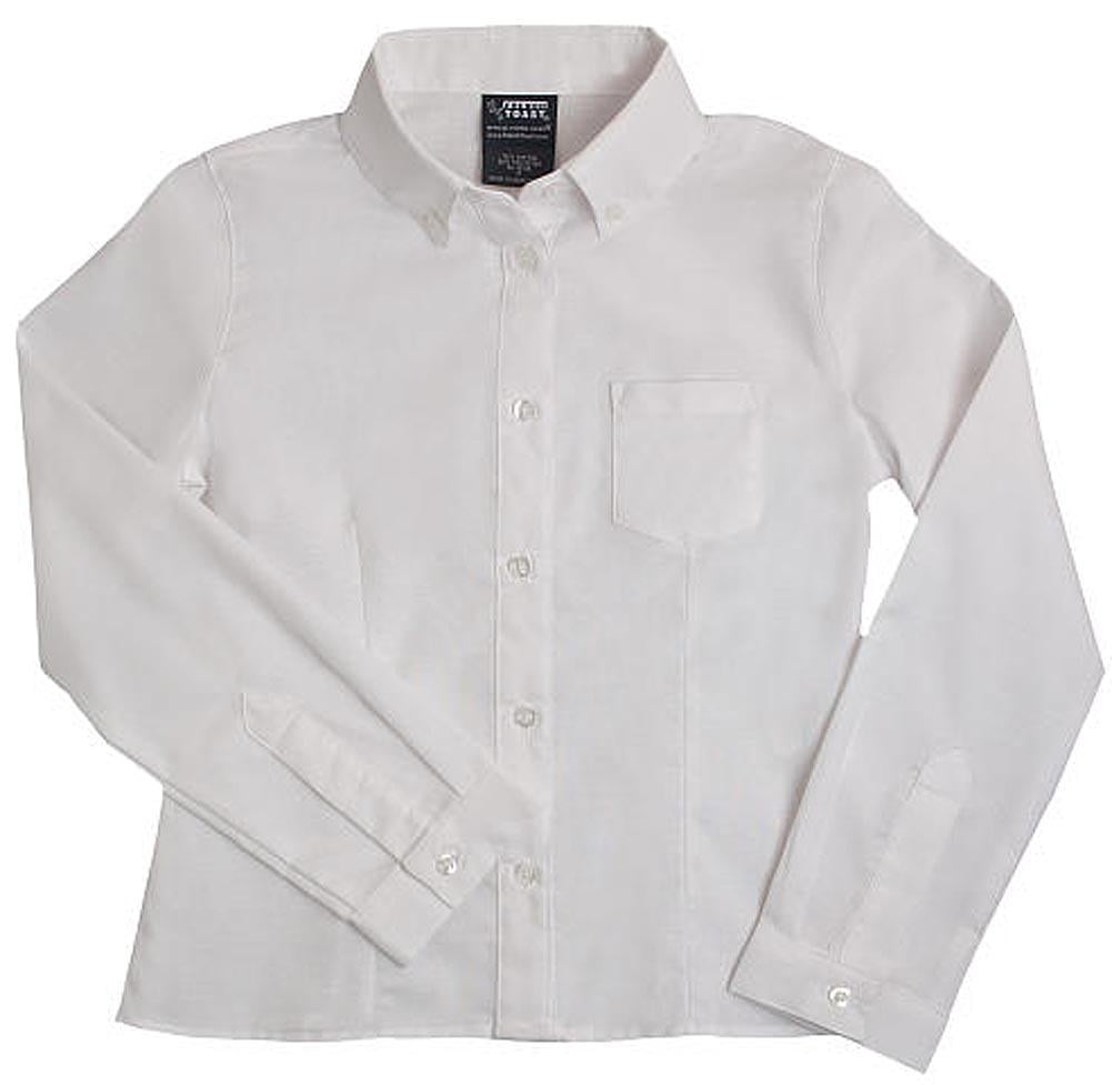 French Toast – Girls Long Sleeve Oxford Blouse with Darts White The oxford for every girl this perfect long sleeve classic top has a single breast pocket button down collar and flattering fit. Cotton/polyester. Imported. Machine wash #34160 34-160