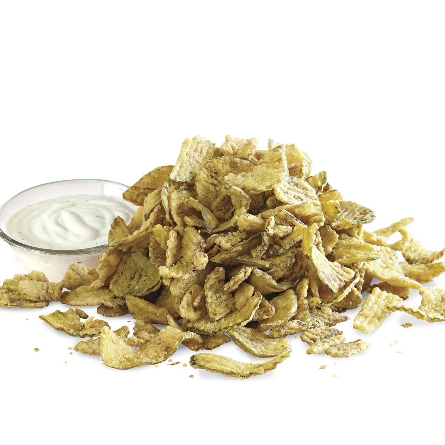 - Crispy, fried cucumbers with a great pickle flavor for Salads, Pulled Pork sandwiches, Mac & Cheese, Potato Salad and more.