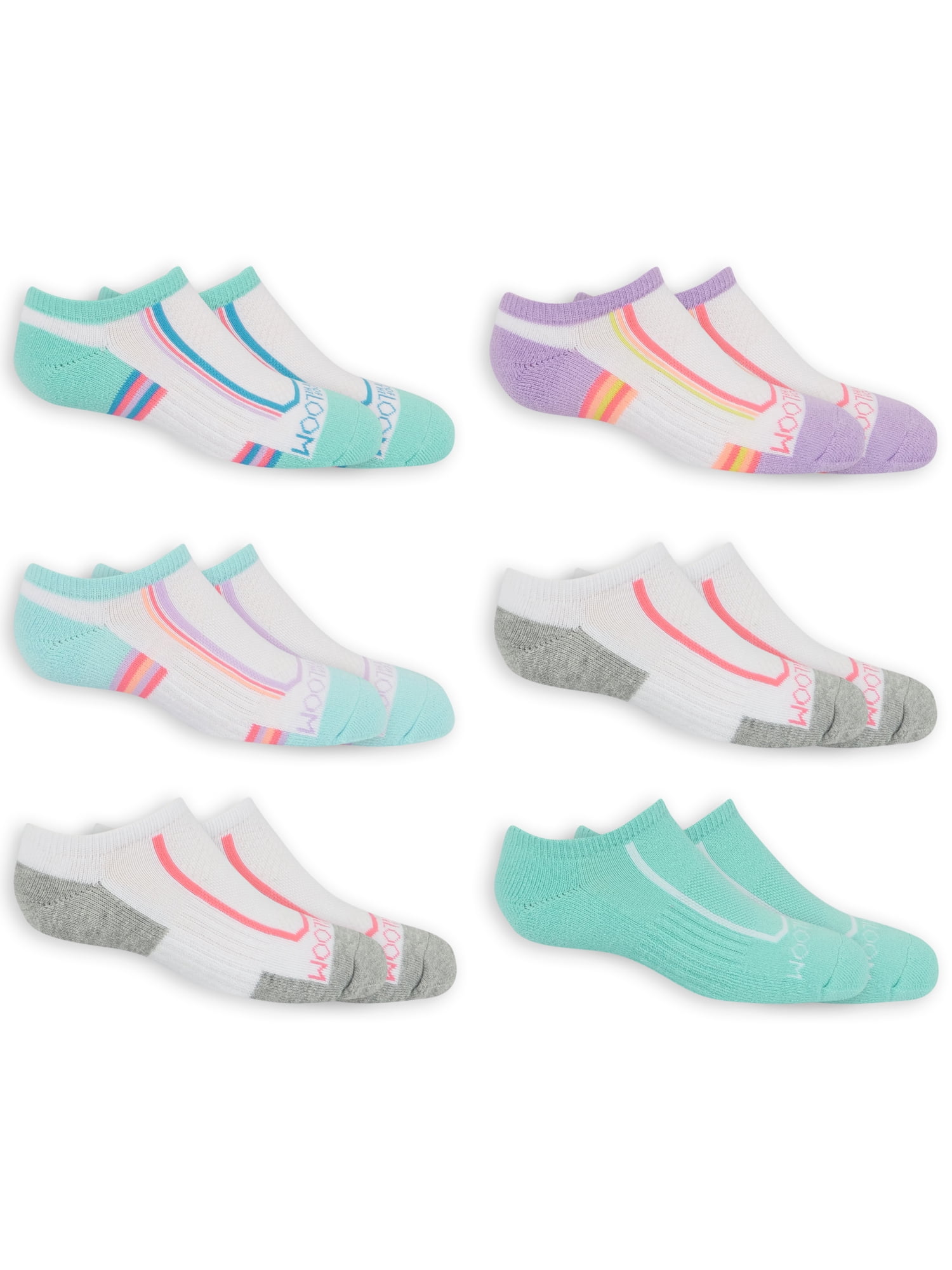 - Active cushioned no show patterned kids socks in a 12-pair value pack