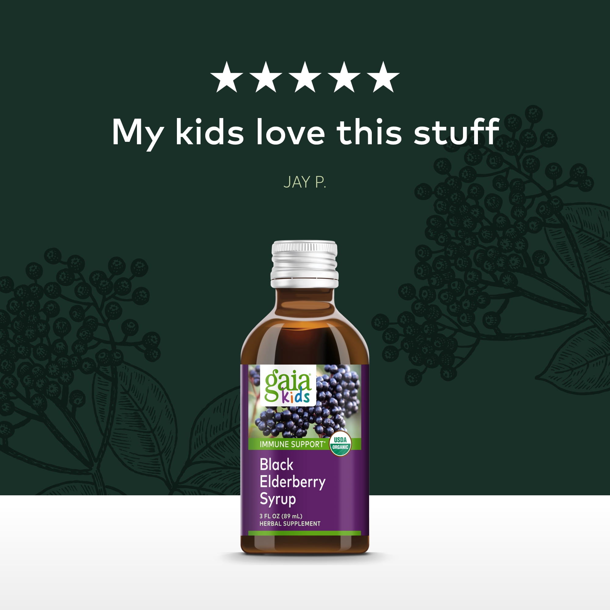 Our delicious GaiaKids Black Elderberry Syrup is suitable for everyday use for the whole family. This popular formula is USDA Certified Organic and made with only organic black elderberries. Ideal for both daily and seasonal immune support, our Black Elderberry Syrup is a delicious and potent way to maintain your child’s immune health all year long.