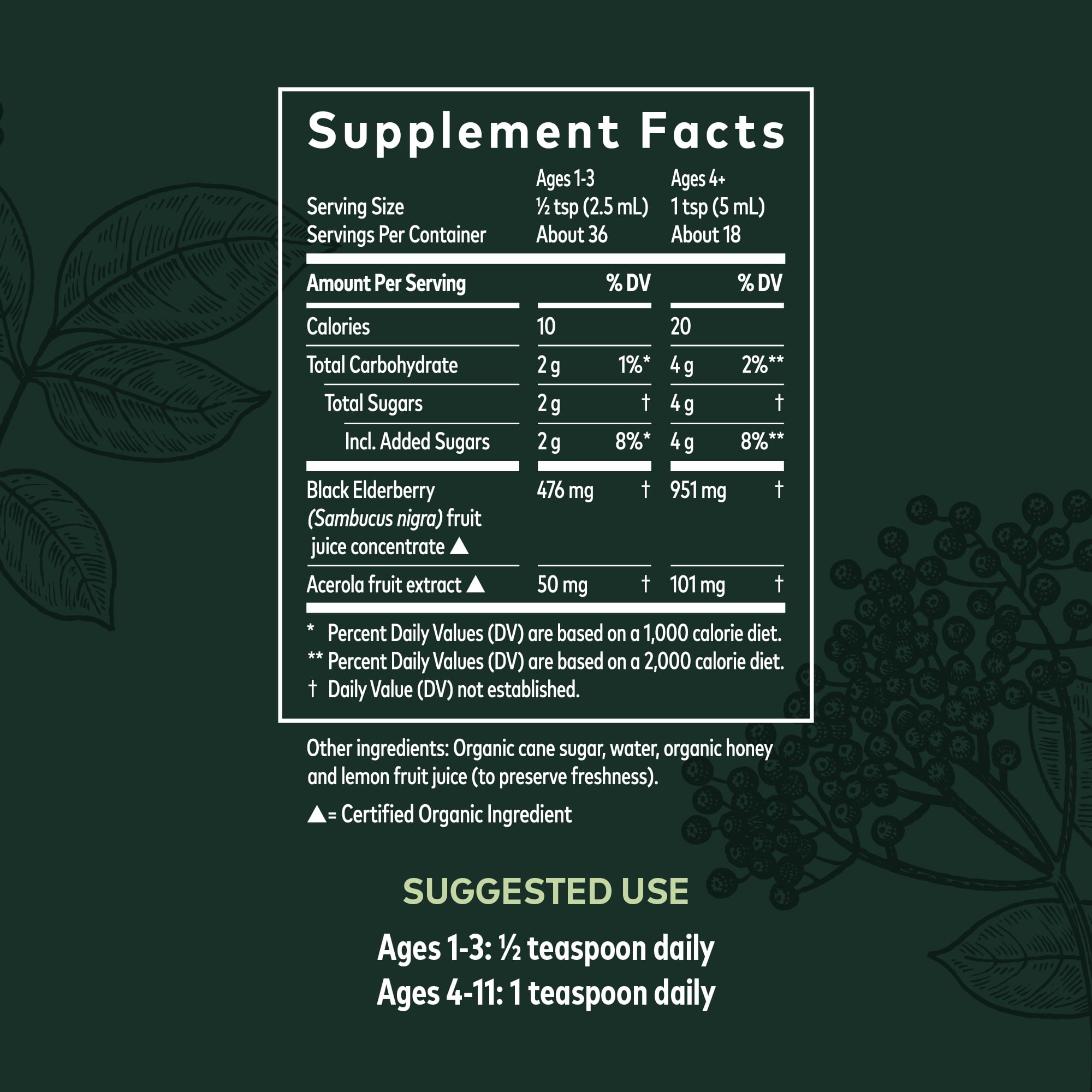 - Elderberry (Sambucus nigra) Immune Support: A delicious daily tonic to support kids’ immune health*