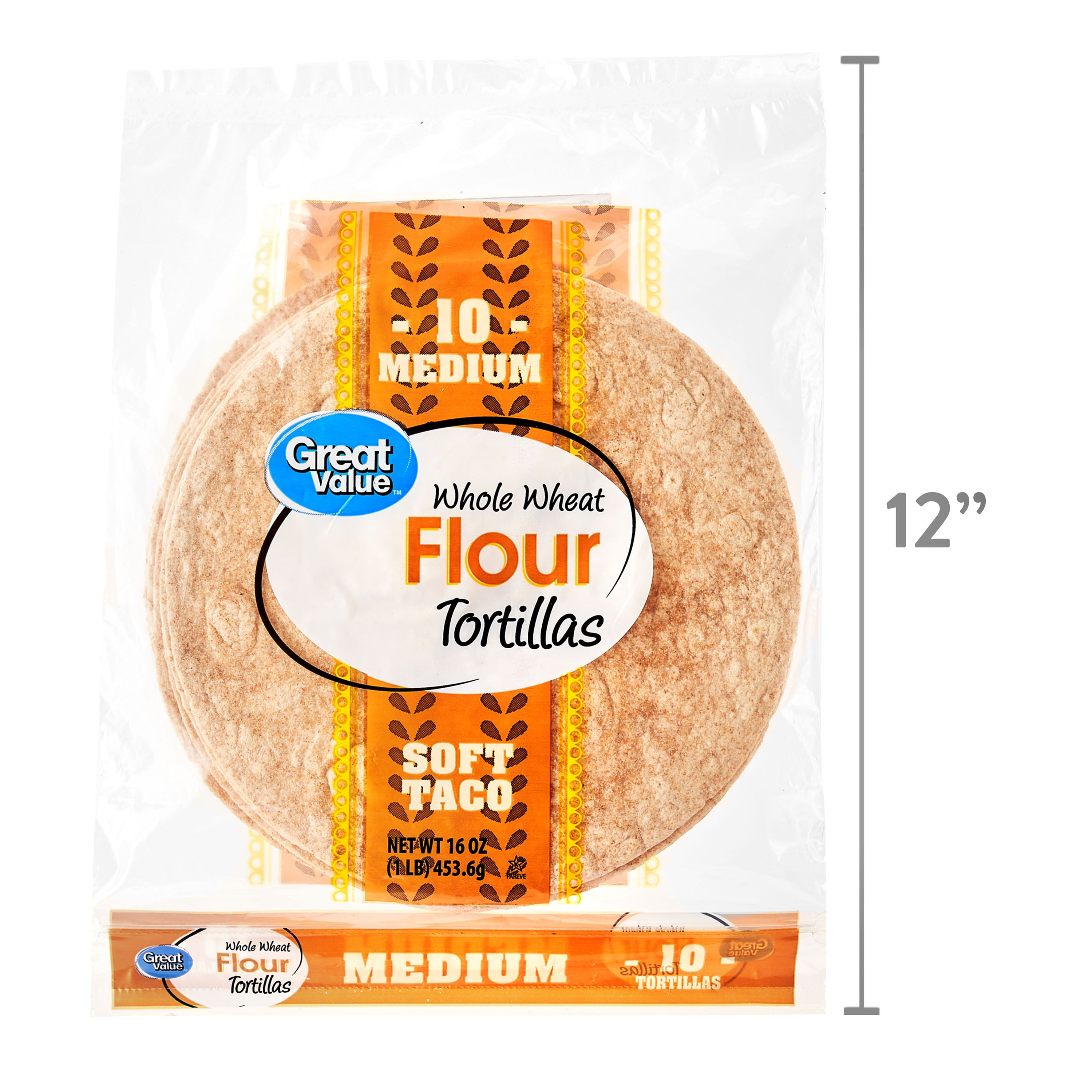 Great Value Medium Whole Wheat Flour Tortillas, 16 oz, 10 Count: