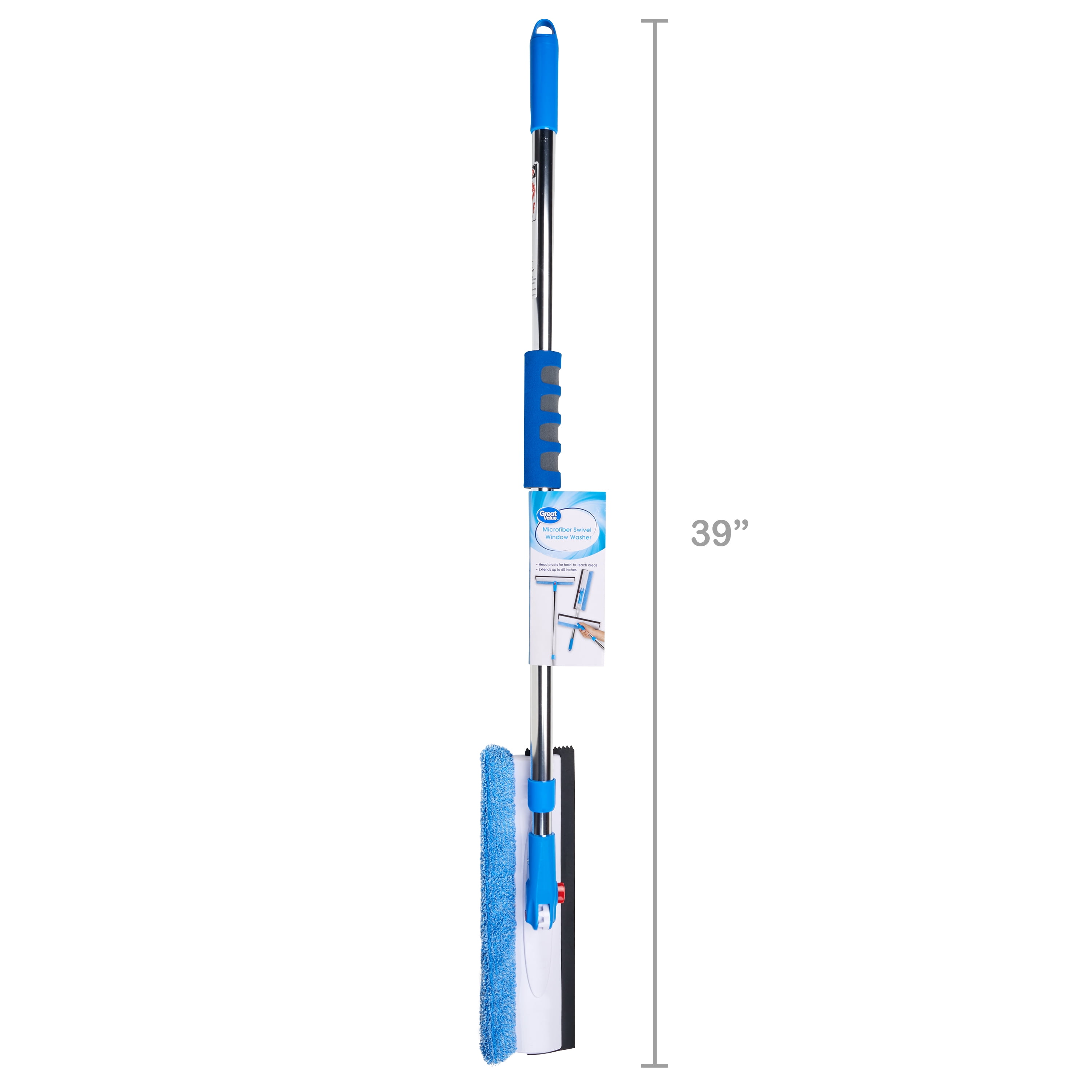 Keep your home clean and attractive with the Great Value Microfiber Swivel Window Washer. With a 100% rubber squeegee on the reverse side for streak-free drying, this window washer is a great way to clean windows and mirrors. The head pivots which makes it easier to get those hard-to-reach areas and the non-rust aluminum handle extends to 60 inches. Add the Great Value Microfiber Swivel Window Washer to your household cleaning supplies.