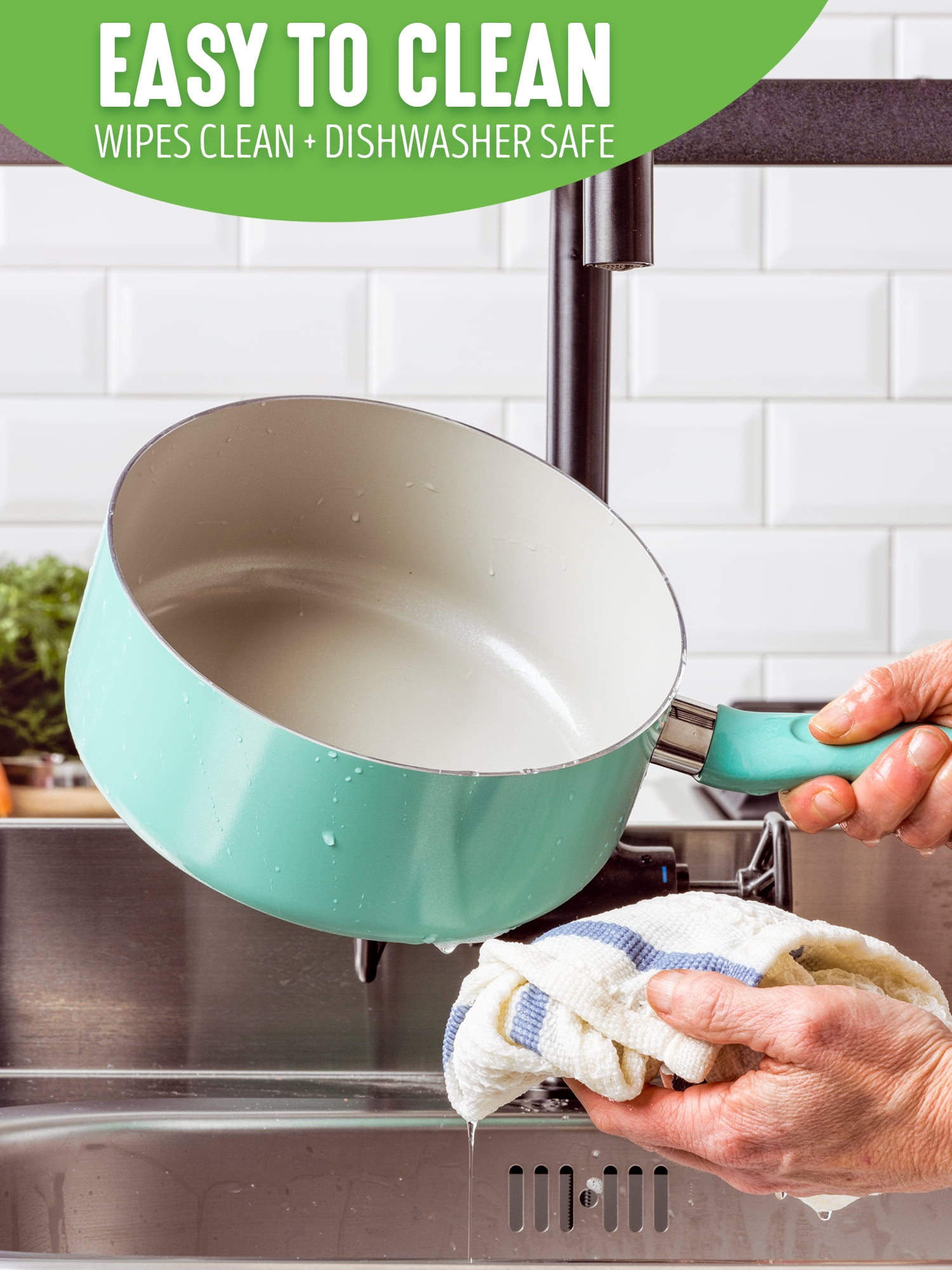Designed for effortless performance and cleanup, this new 2.5 Quart Sauce pan features our diamond-infused Sandstone nonstick coating, which is free of PFAS, PFOA, lead, and cadmium. GreenLife’s healthy ceramic nonstick is not stuck in the past—that’s why our ceramic nonstick starts with sand and creates 60% less CO2 emissions during the curing phase than traditional coatings. This pan is also crafted with recycled aluminum, because we want everyone to cook healthy for years to come. Finished in vibrant colors, this pan is outfitted with stay-cool handles to keep your cooking comfortable. A durable glass lid offers a good look at any meal in progress without sacrificing heat. For all stovetops, except induction. Oven safe to 350°F. Dishwasher safe.