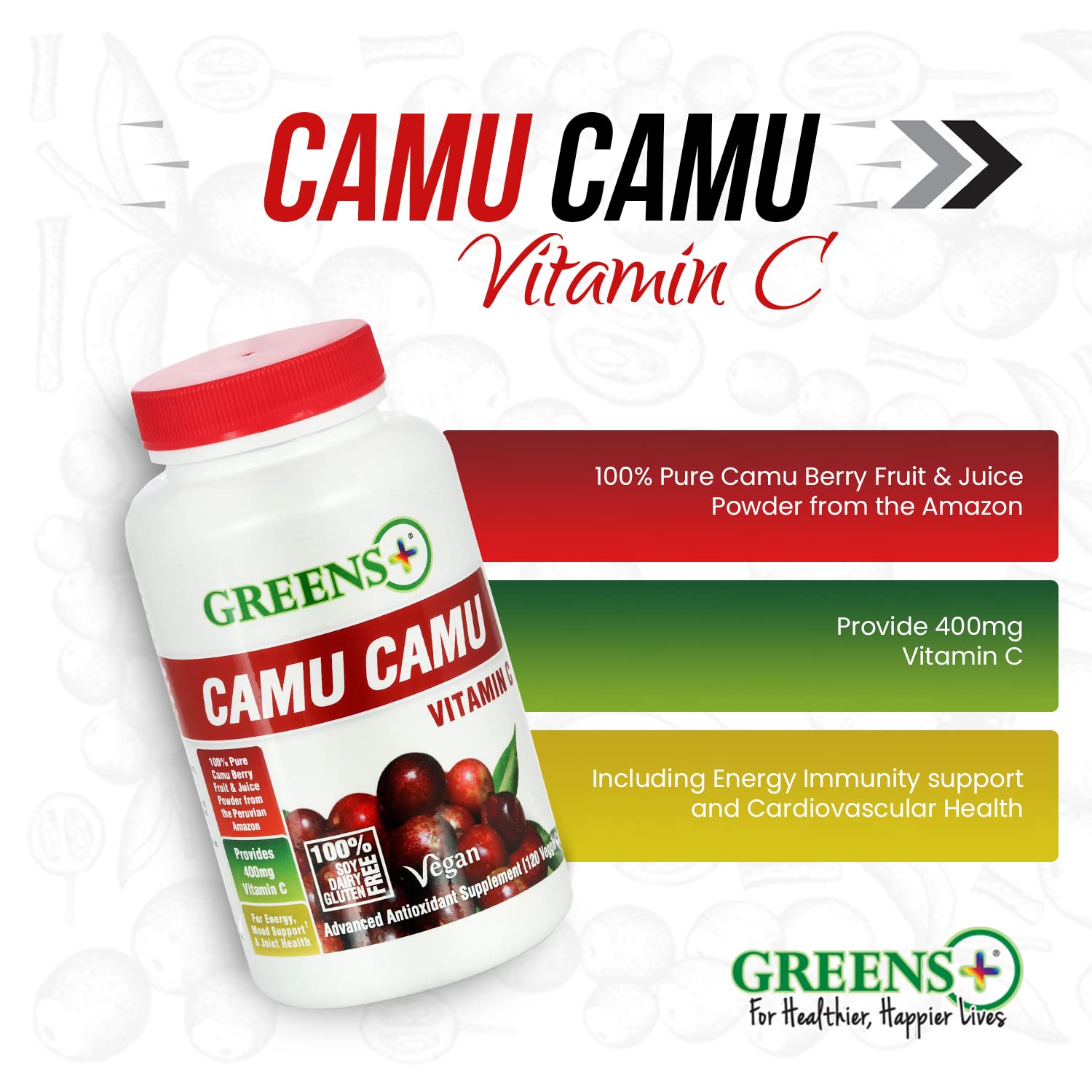 Greens Plus Camu Camu Dietary Superfruit Supplement – 120 Veggie Capsules