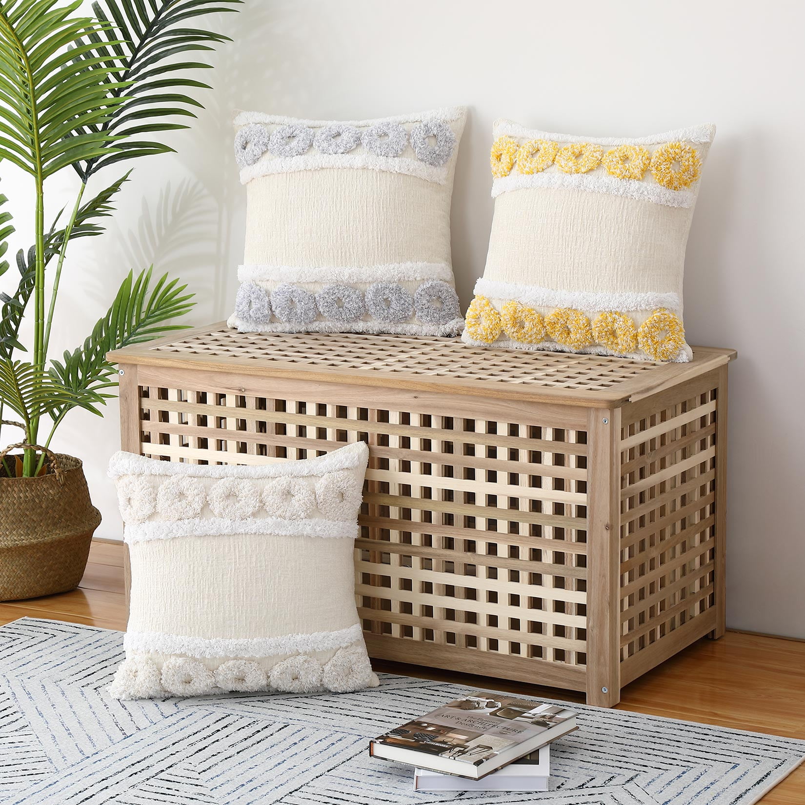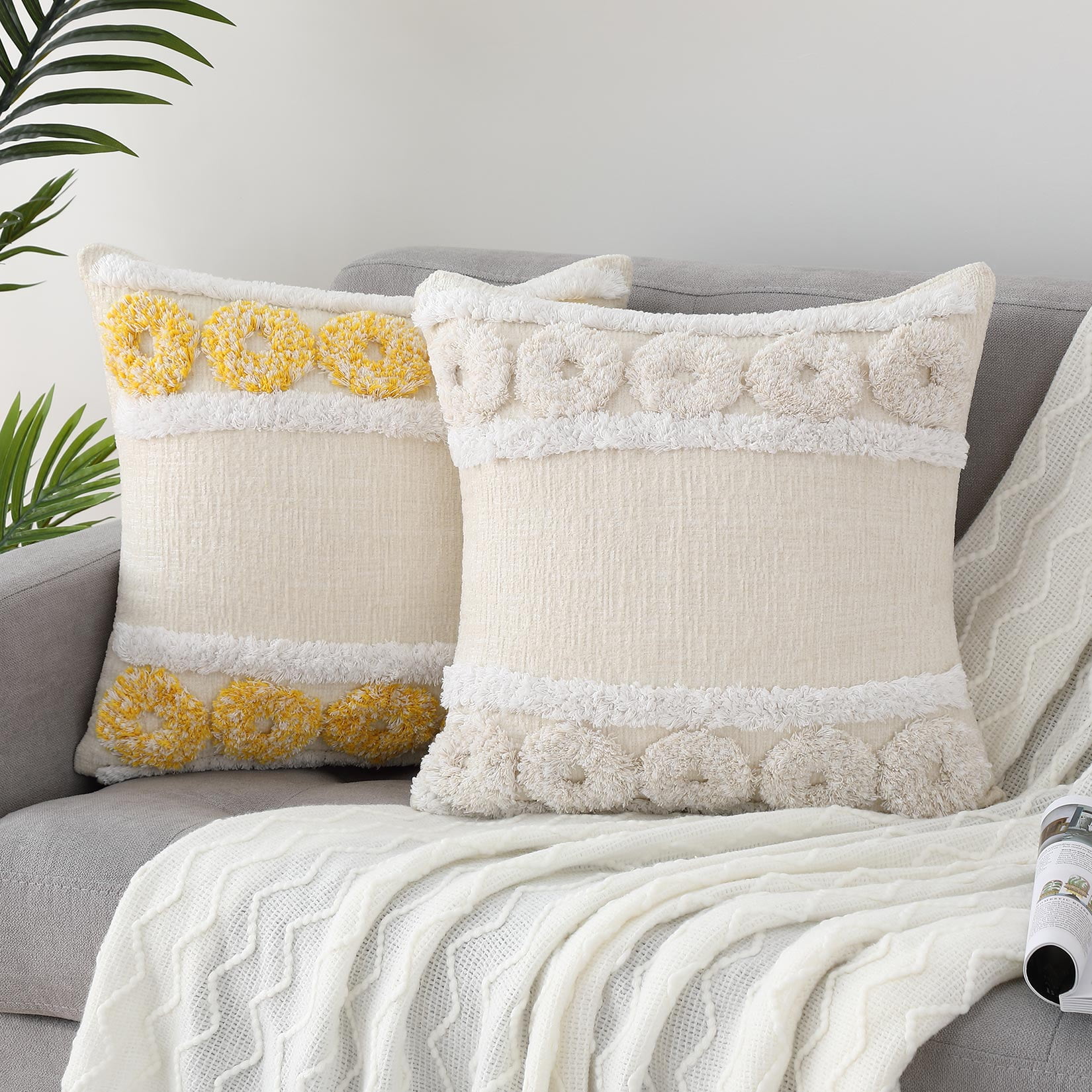 Haperlare 18" x 18" Chenille Soft Throw Pillow Cover Square Cushion Morocco Boho Tufted Pillowcase with Invisible Zipper for Sofa Couch Chair Bedroom