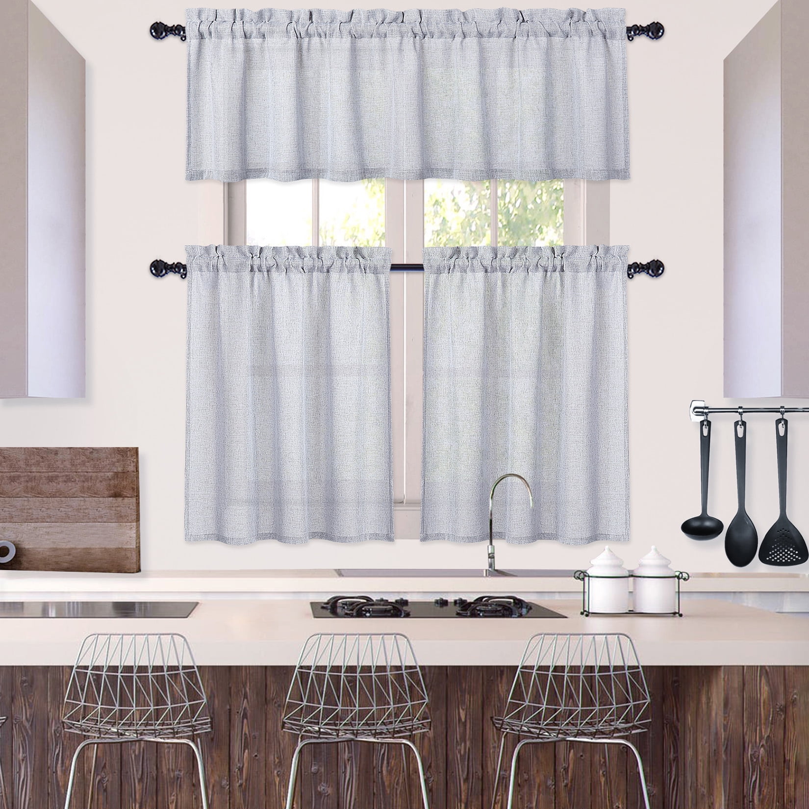 Haperlare 26’W x 45’L Farmhouse Tier Curtains for Living Room Natural Design Blackout Kitchen Curtains for Dining Room, Gray, 2 Panels