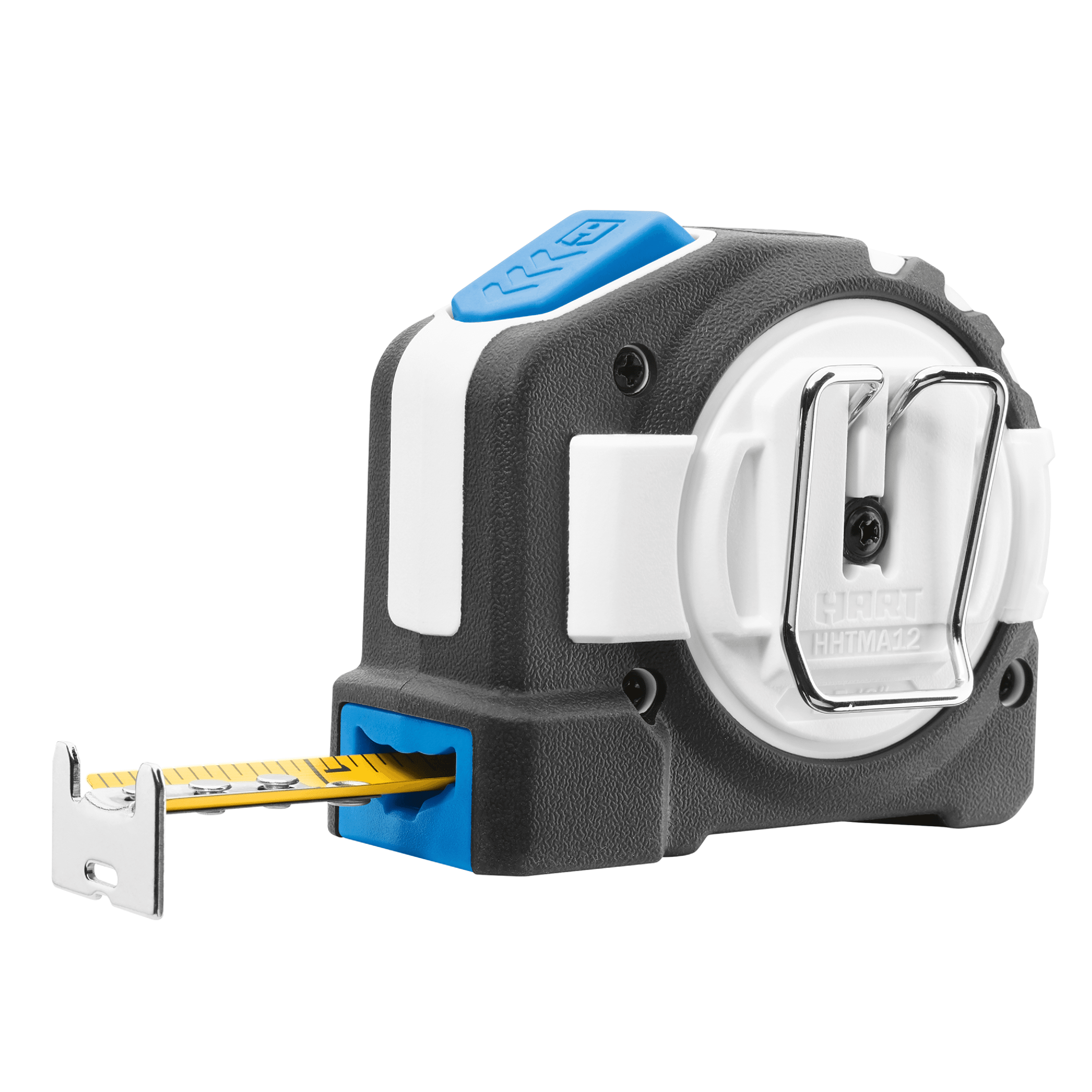 The HART 16-Foot Chrome Tape Measure includes fraction markings for quick and accurate reads, an oversized hook that grabs from top or bottom and a superior hook attachment for increased durability. The wire form clip reduces belt/pocket fraying.