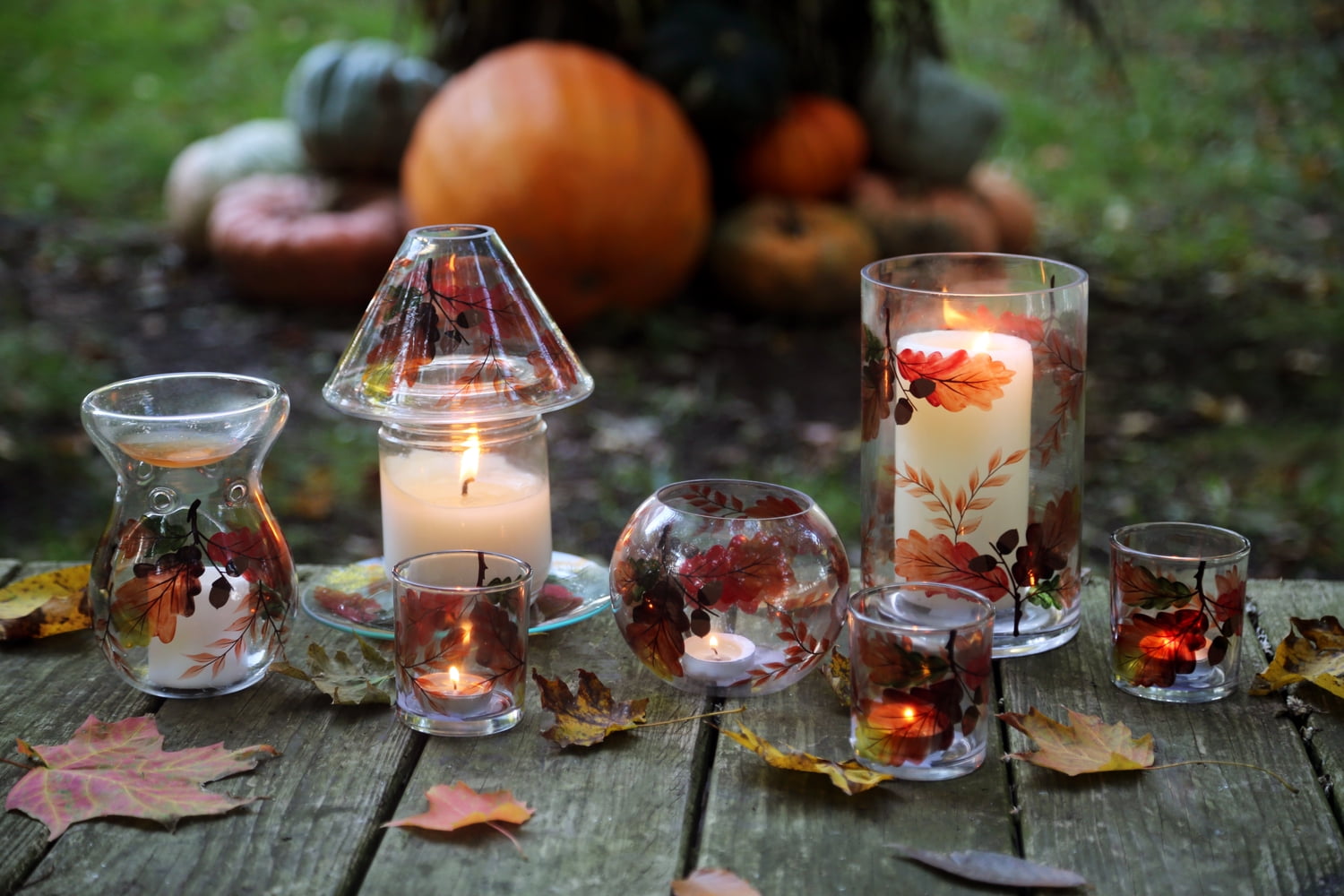 Candle Decor by Pavilion features several different styles of candle holder glassware with different style techniques including sandblasting, decals, painting, cutting and more. The fall leaf themed candle holders and wax warmers are perfect for any home during the autumn season.