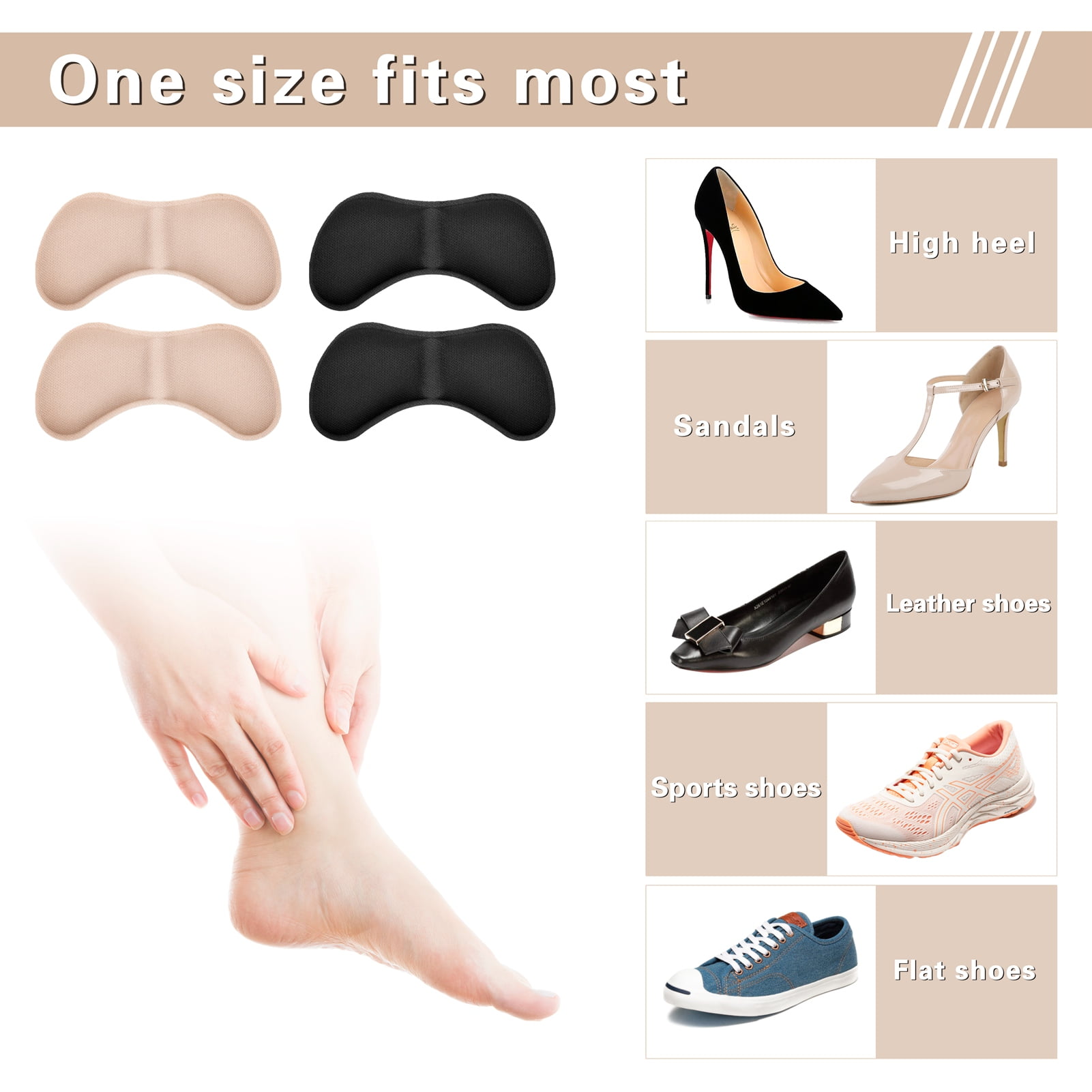 HEQUSIGNS 8 Pairs Heel Cushion Pads, Shoe Inserts Heel Cushion Inserts, Self-Adhesive Heel Cushion Inserts Prevent Heel Slip and Blister, Heel Pain Relief for Men and Women