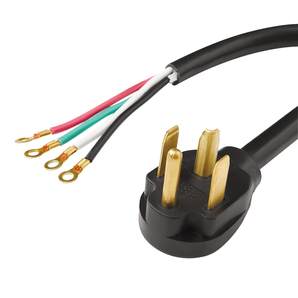 The Hyper Tough black dryer cord is rated for 250V, 30A, 7500 Watts and meets ETL safety and quality standard. With a limited 2-year warranty. Hyper Tough 4 prong dryer cord for a 30A 4-wire dryer connection; 4-prong 30A 14-30R outlet are commonly found in homes built after 1996 for a dryer power cord 4 prong compatible. 4 wire dryer cord with a NEMA 14-30 plug fits most newer dryer models, purchase an appliance power cord for a new dryer that is often sold without the power cord. Its right-angle plug keeps the cord nearer to the wall to prevent it from accidentally dislodging. Black color blends perfectly into your home decor. Installation of the Hyper Tough Dryer Cord is safe and easy. Get your appliance up and running quickly by choosing this handy replacement cord. The Hyper Tough Dryer Cord is definitely your best choice.