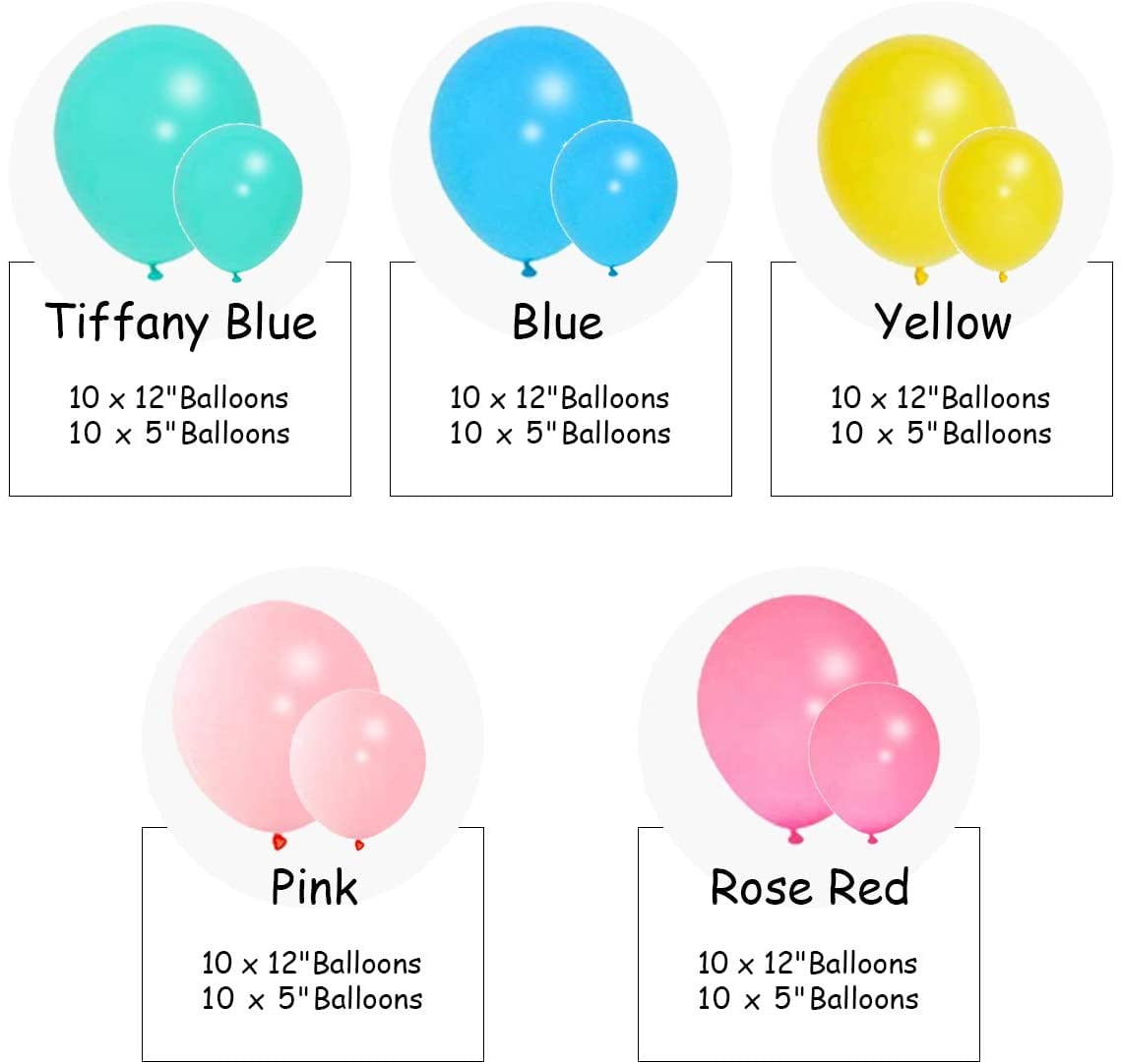 Girl’s Candy Paradise Happy Birthday Balloon Garland for Donut Bachelor Themed Party. Package details: 10 x 12" matte balloon in light blue 10 x 12" matte balloon in Tiffany blue 10 x 12" matte balloon in light rose red 10 x 12" matte balloon in light pink 10 x 12" matte balloon in yellow 10 x 5" matte balloon in light blue 10 x 5" matte balloon in Tiffany blue 10 x 5" matte balloon in light rose red 10 x 5" matte balloon in light pink 10 x 5" matte balloon in yellow 1 x 12" ice cream foil balloon 1 roll balloon tape strip(110 holes) 1 roll balloon adhesive dots