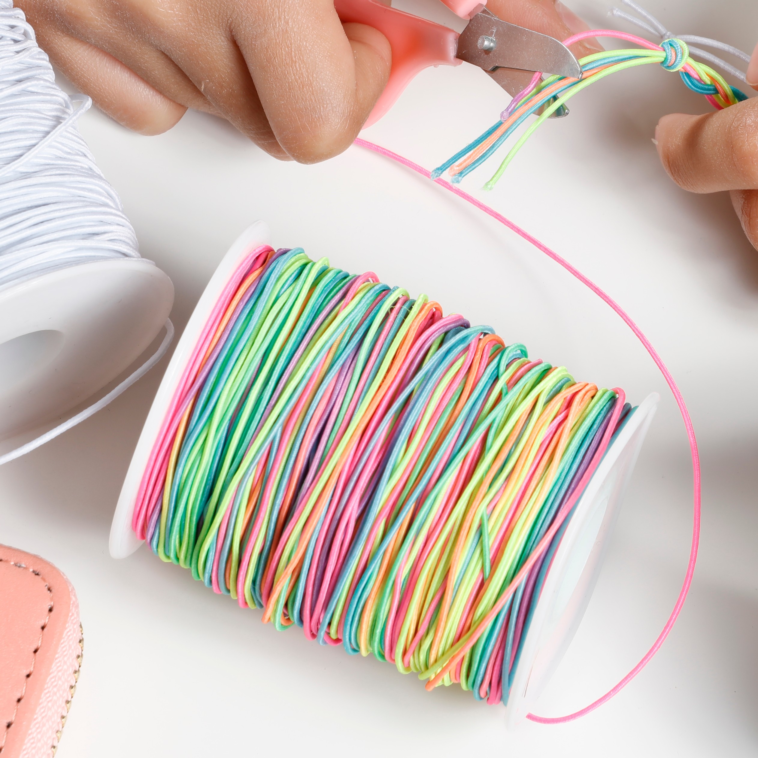 - VALUE PACK: The Incraftables Elastic String set includes 3 sets (white, black & rainbow) of 1 mm thick elastic bracelets Cords. Each roll is 100 meters (328 feet) long.