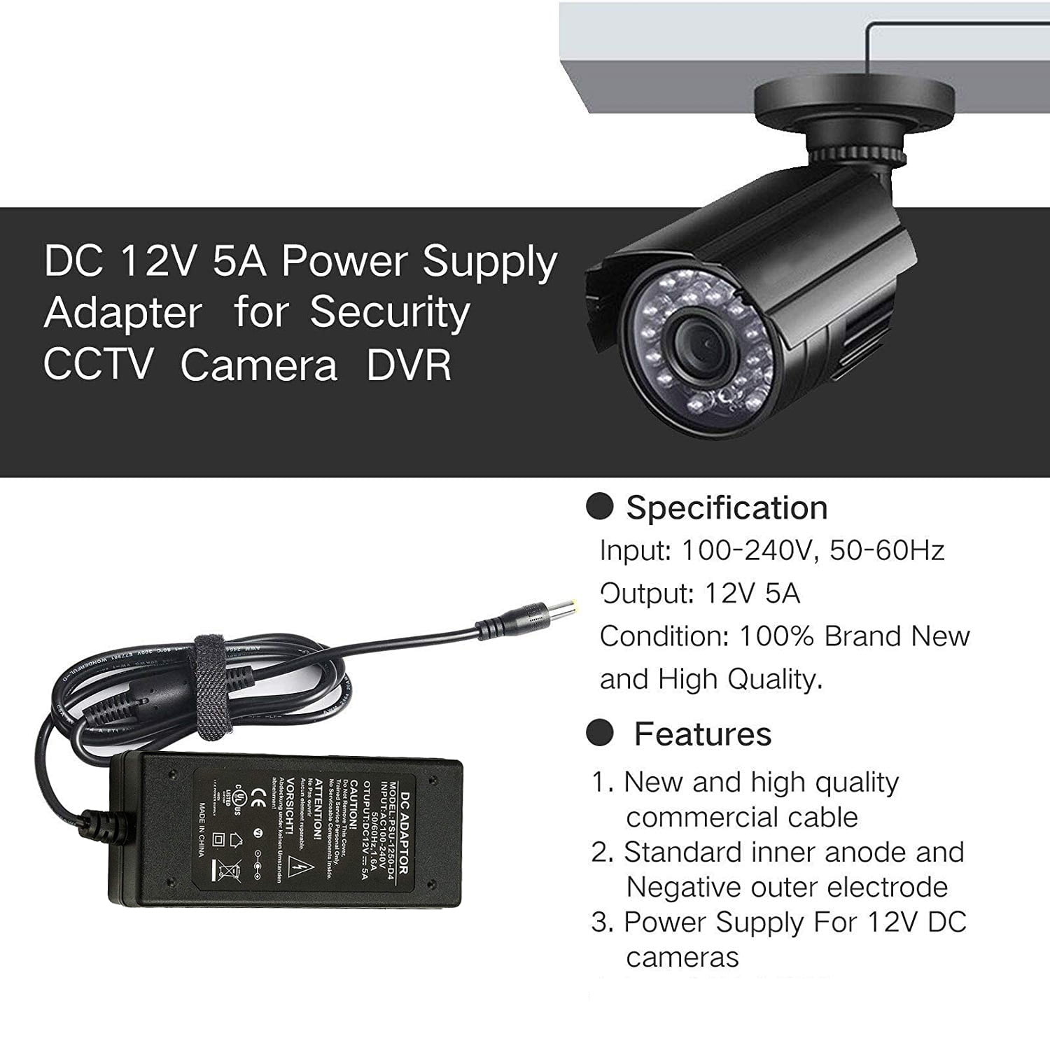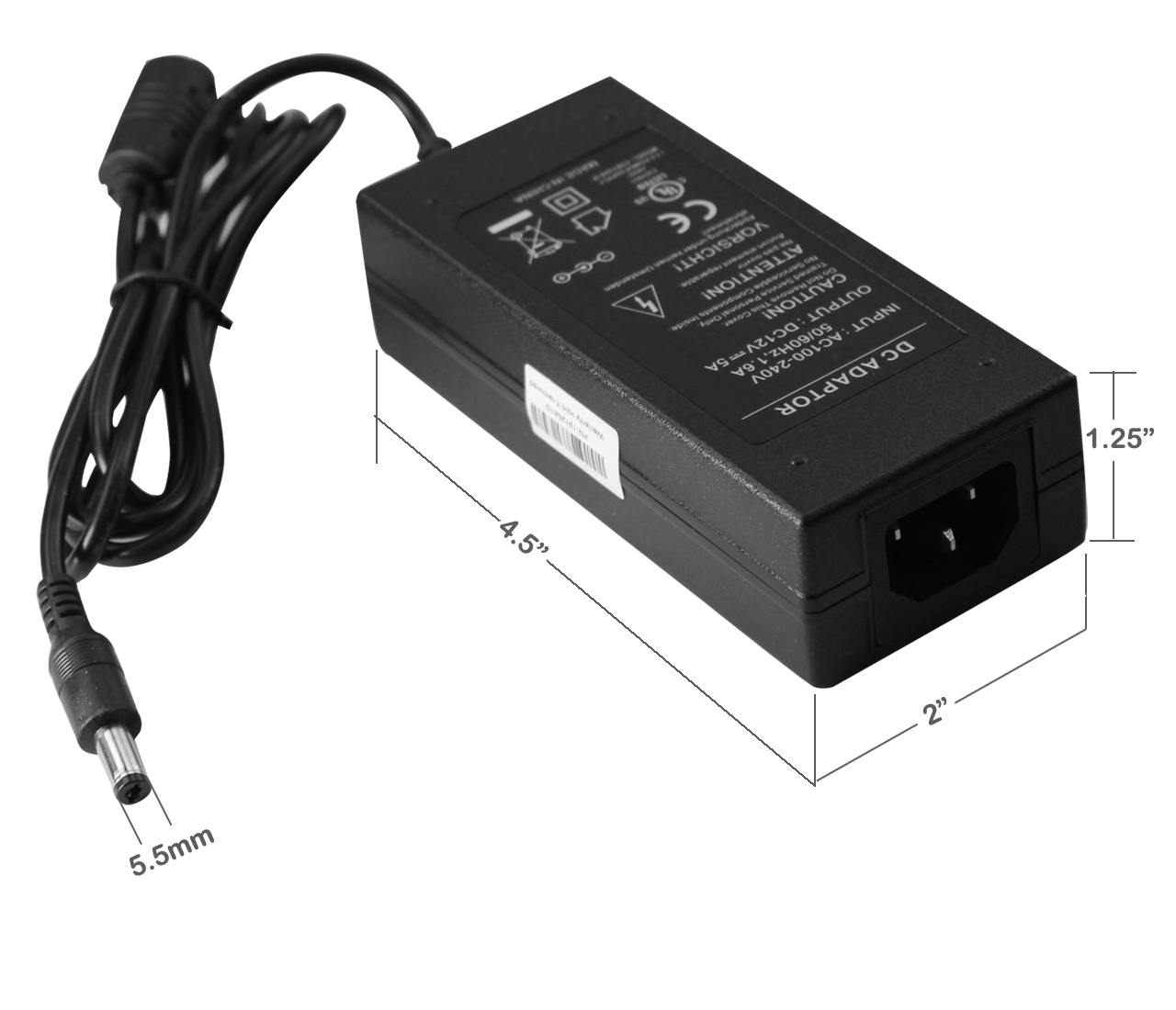 InstallerCCTV DC 12V 5 Amp Power Adapter is UL Listed and Level VI compliant. It is easy to use and compatible with LED Strip, Routers, ADSL CATS, Hubs, Switches, and Security Cameras requiring 5 amp or under.
