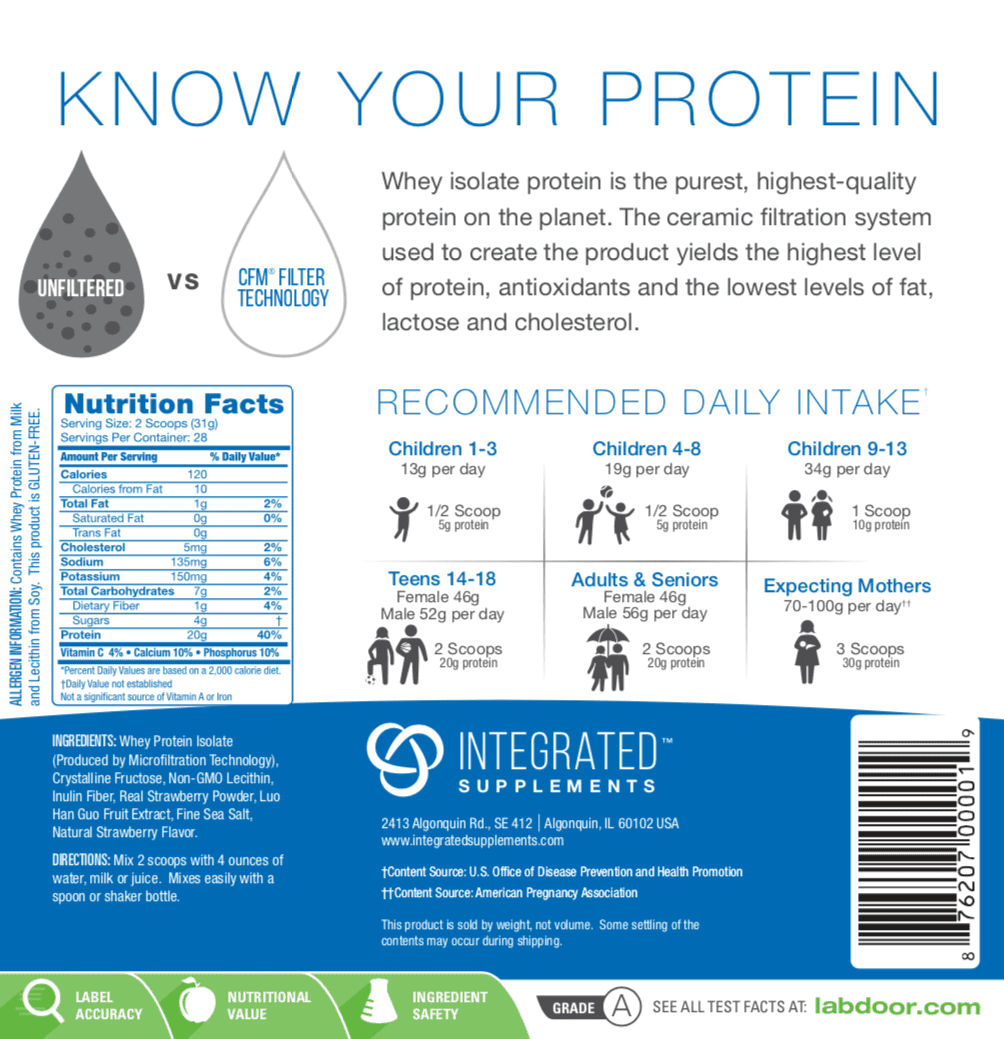 Integrated Supplements Wild Strawberry Whey Isolate Protein Powder, 2 Lb