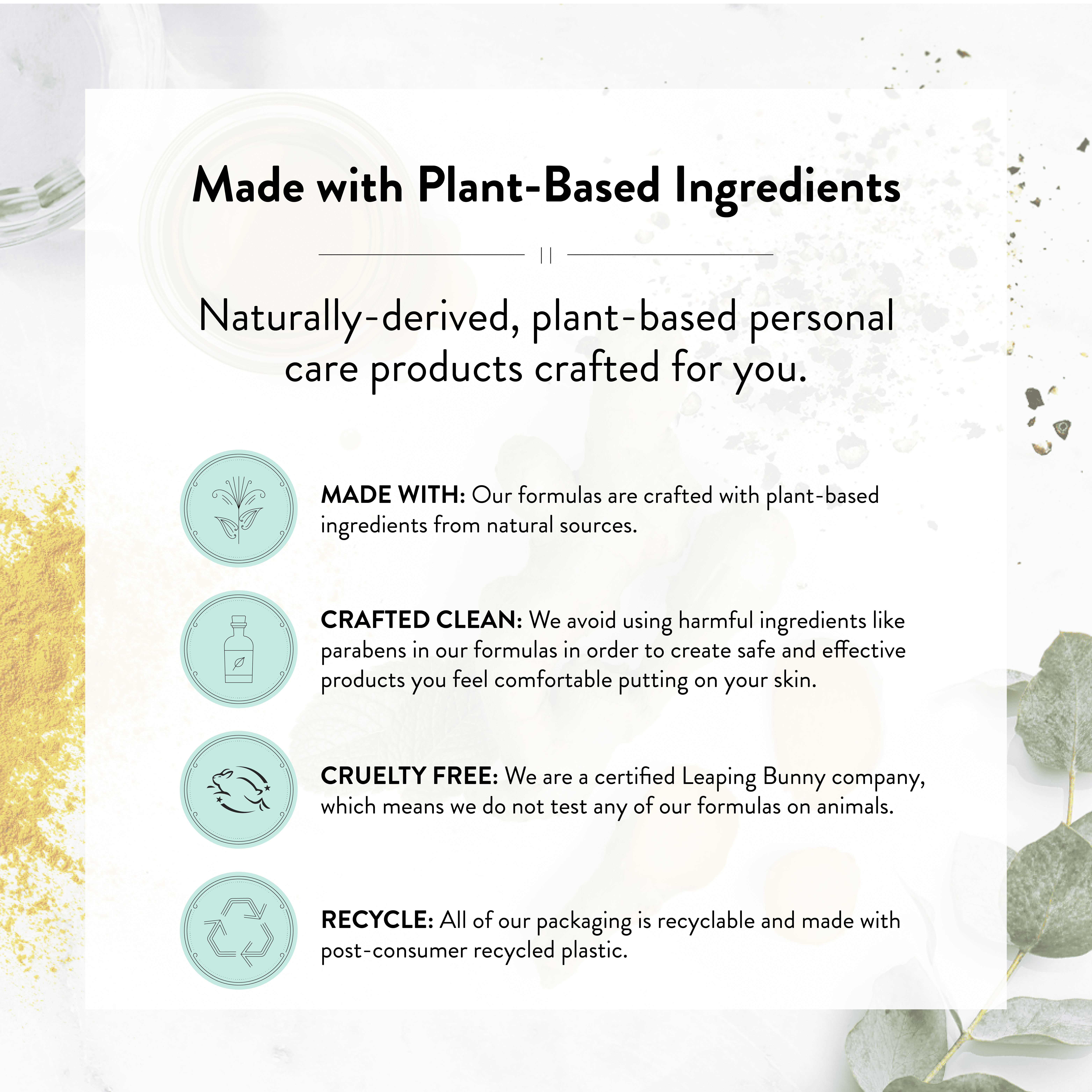 - INSPIRED BY NATURE: we believe in creating high-quality products with ingredients from natural sources that work even with sensitive skin. Never have to worry about irritating parabens, dyes, or phthalates