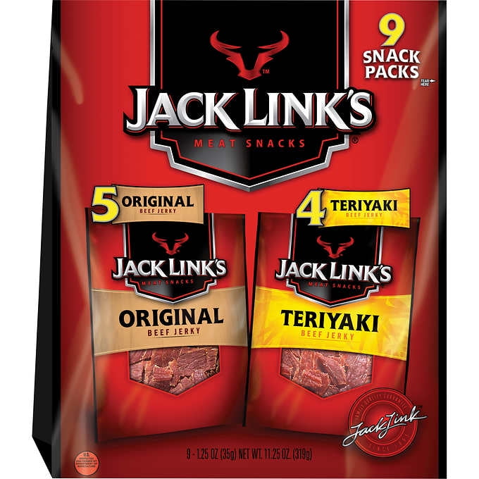 Jack Link’s Beef JerkyVariety pack: 5-Original, 4-Teriyaki1.25 oz bag9 ctFeed your Wild Side with Original or Teriyaki Flavor: Whether you’re a fan of Jack Link’s original spices or want the tang of teriyaki, there’s a snack for you. Plenty of Protein to Curb your Hunger: Don’t let hunger get the best of you. Keep these on-the-go packs handy for when hunger takes over. Snack Packs for On-The-Go Snacking: Throw it in your purse, gym bag or car. Break open a bag wherever hunger strikes. Better-for-You Doesn’t Have to Be Boring: Grab this quick protein snack for no added MSG, no artificial preservatives, and no sodium nitrates. Variety for When You Just Can’t Commit: Making decisions can be hard. That’s why Jack Link’s is giving you options. Grab Original or Teriyaki to match your mood.