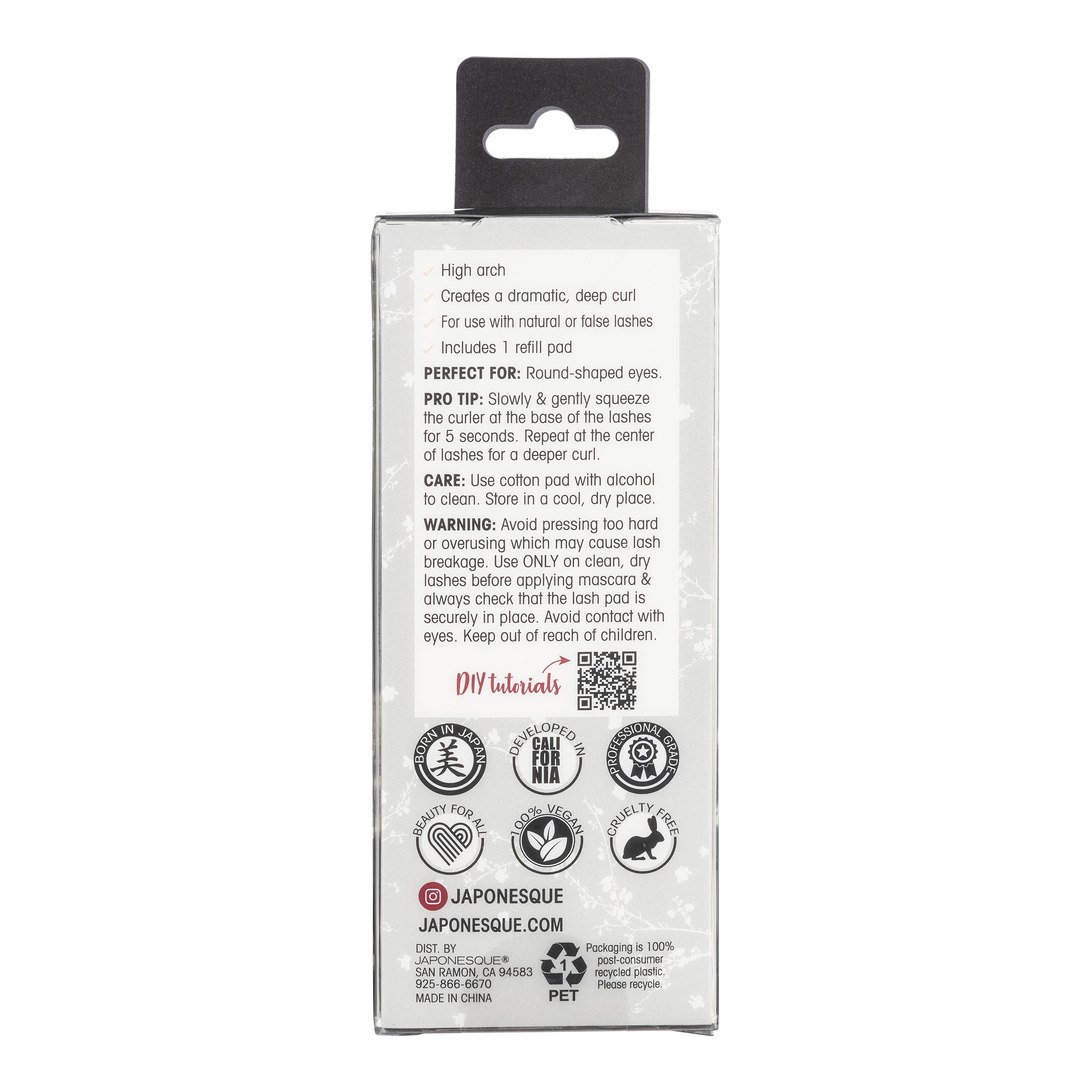 The Japonesque® Lash Curler Limited Edition delivers up to 8 hours of superior curl. The high arch contoured design creates a dramatic deep curl with ease and is perfect for more rounded eye shapes. The wide grip handles allow for an excellent grip so you can get super close to the lash line. The soft lash pad creates a long-lasting curl and is gentle enough for both natural & false lashes.