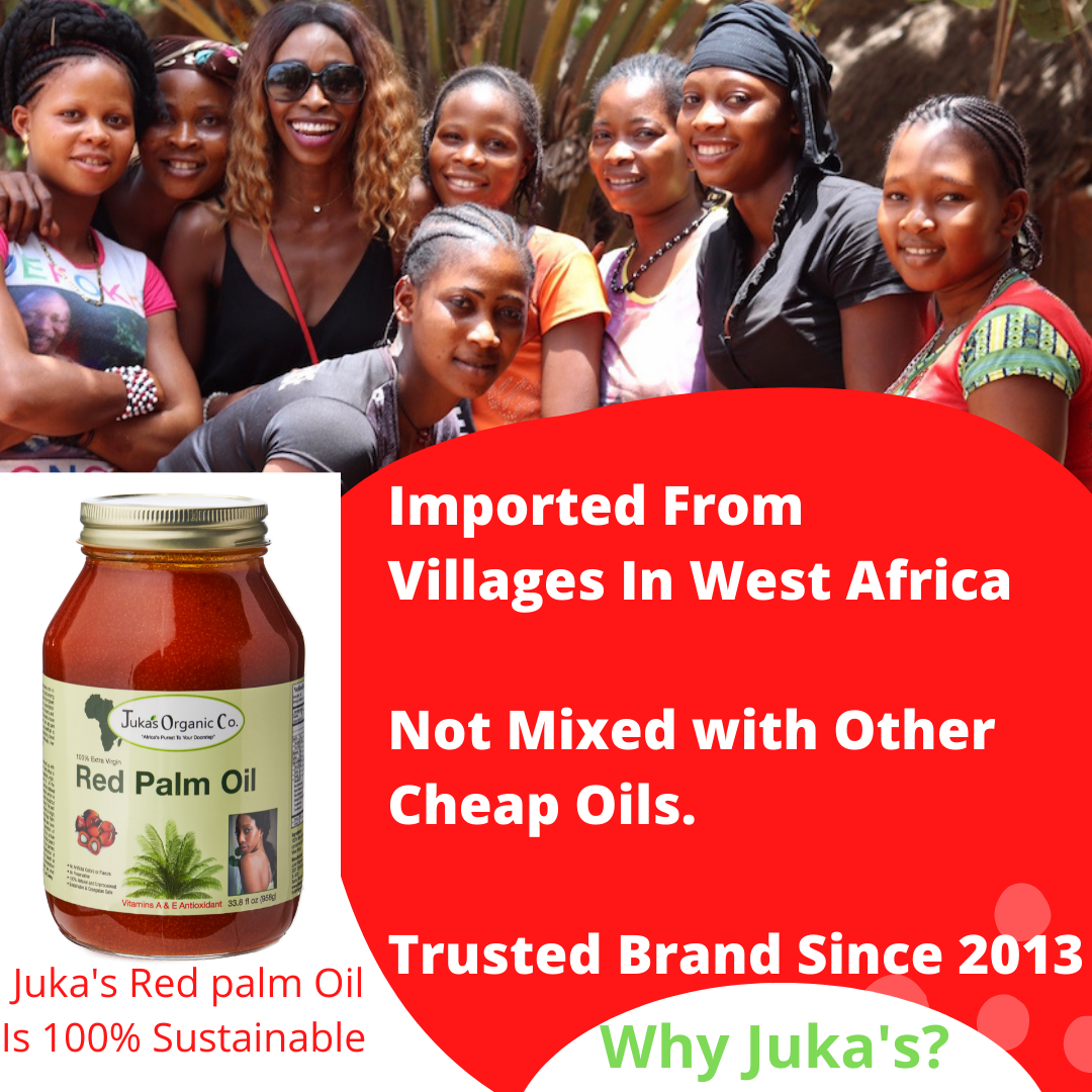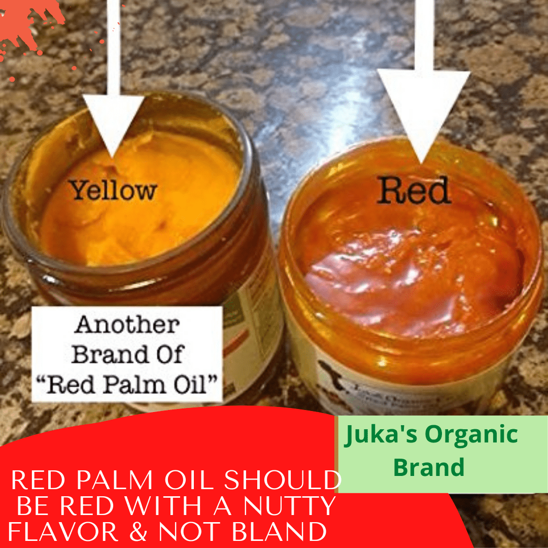 Are You Buying Red Palm Oil & Don’t Even Know How It Is Supposed To Look, Taste Or Smell Like? Is It Authentic, Extra Virgin, Unprocessed, Unrefined & Sustainable? Juka’s Red Palm Oil is one of the purest and most organic RPO you can find. Our Red Palm Oil is Imported directly from small villages of Africa. We have earn the trust of many customers that can identify authentic RPO, In fact Juka’s is the No.1 selling brand in all the local African stores that supplies our RPO in the U.S. We do not mix our red palm oil with other cheap oils to maximize Profit we bring it to you at its purest. True unrefined red palm oil has a very deep red color & not orange. Don’t just buy any red palm oil if you are buying it for health reasons, make sure it is authentic for maximum health results.