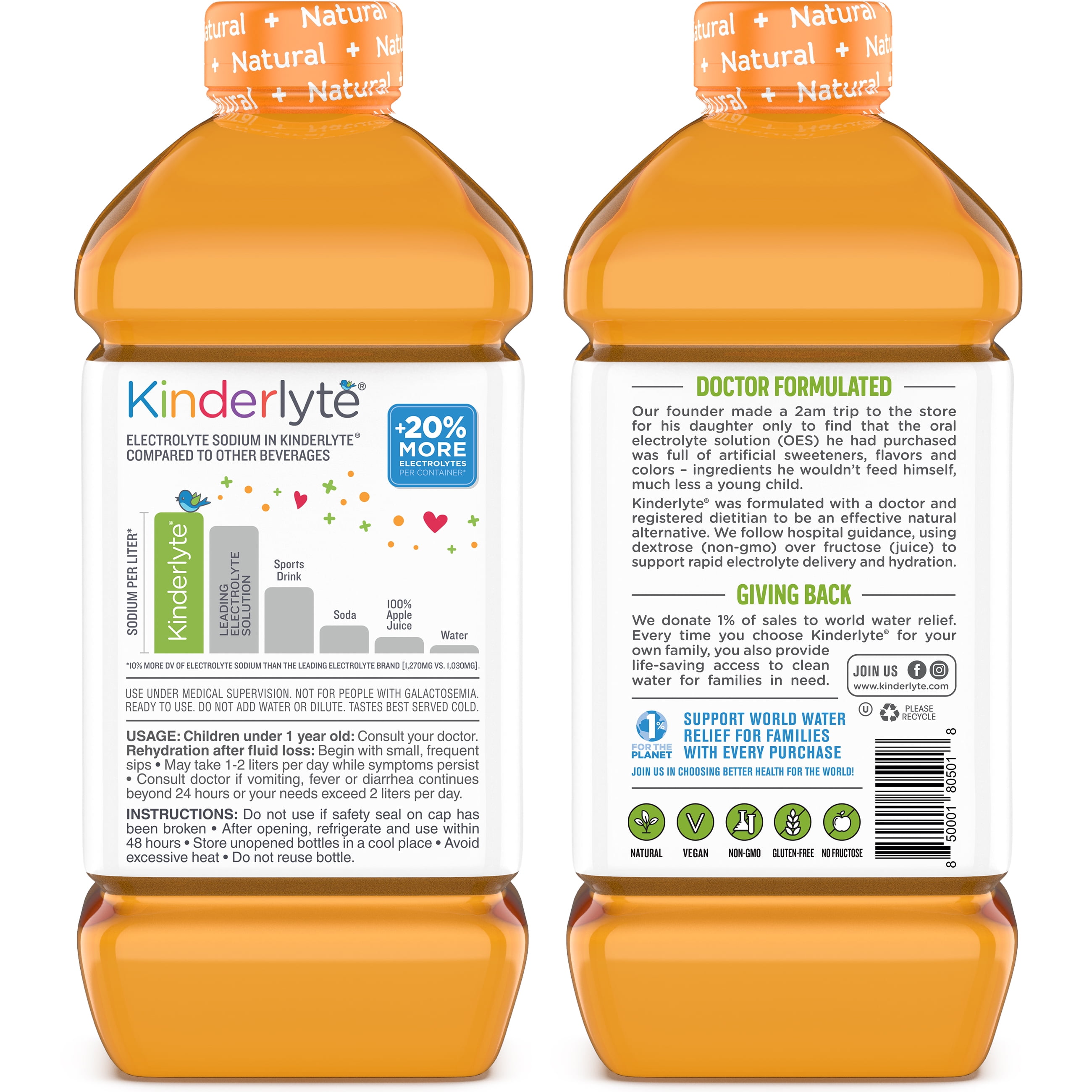 Kinderlyte begins at Kinderfarms, where healthy, natural pediatric oral solutions start with clean and effective ingredients! Kinderlyte Natural Oral Electrolyte Solution contains NO artificial colors, sweeteners, flavors or colors like Sucralose, Acesulfame Potassium, Yellow 6, Blue 1, or Red 40. Formulated by doctors and dietitians, Kinderlyte is a true Oral Electrolyte Solution (OES) with more electrolytes, potassium, and zinc than the leading brand. Kinderlyte natural hydration solutions use non-GMO sugar instead of fructose, so electrolytes are delivered directly to the bloodstream for rapid hydration. This helps to replenish key nutrients due to dehydration resulting from illnesses and colds, stomach viruses, infant diarrhea, toddler vomiting, sports, travel, late nights and more! Keep your family feeling great with Kinderlyte children’s electrolyte drinks, which come in a wide variety of delicious flavors like Fruit Punch and Grape. For travel or on-the-go, check out our oral rehydration solution packets which come in other refreshing flavors like Coconut Lime, Wild Berry and Lemonade.