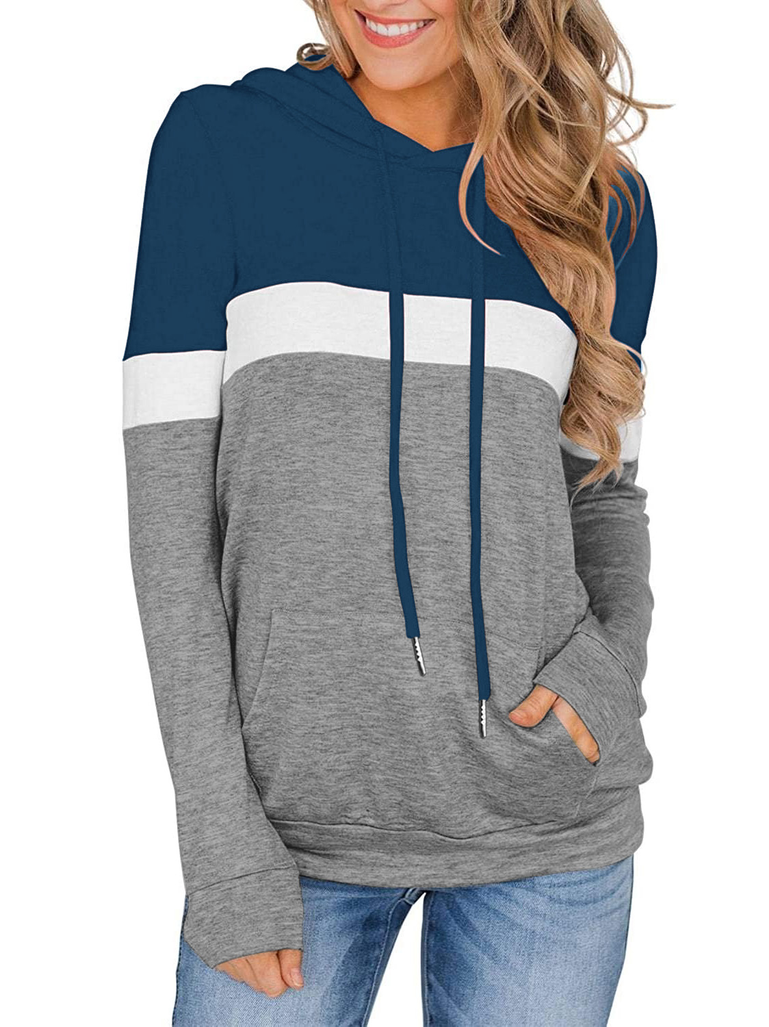 Stylish Design:Color Block,Hooded,Kangaroo Pocket,Pullover.