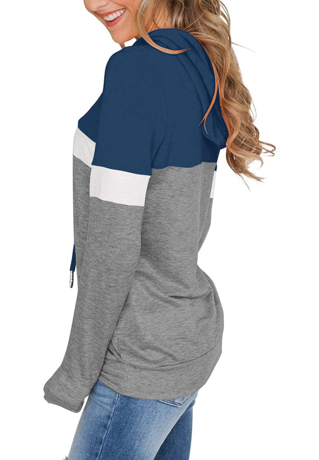 LACOZY Womens Long Sleeve Contrast Hooded Drawstring Sweatshirt Large Size