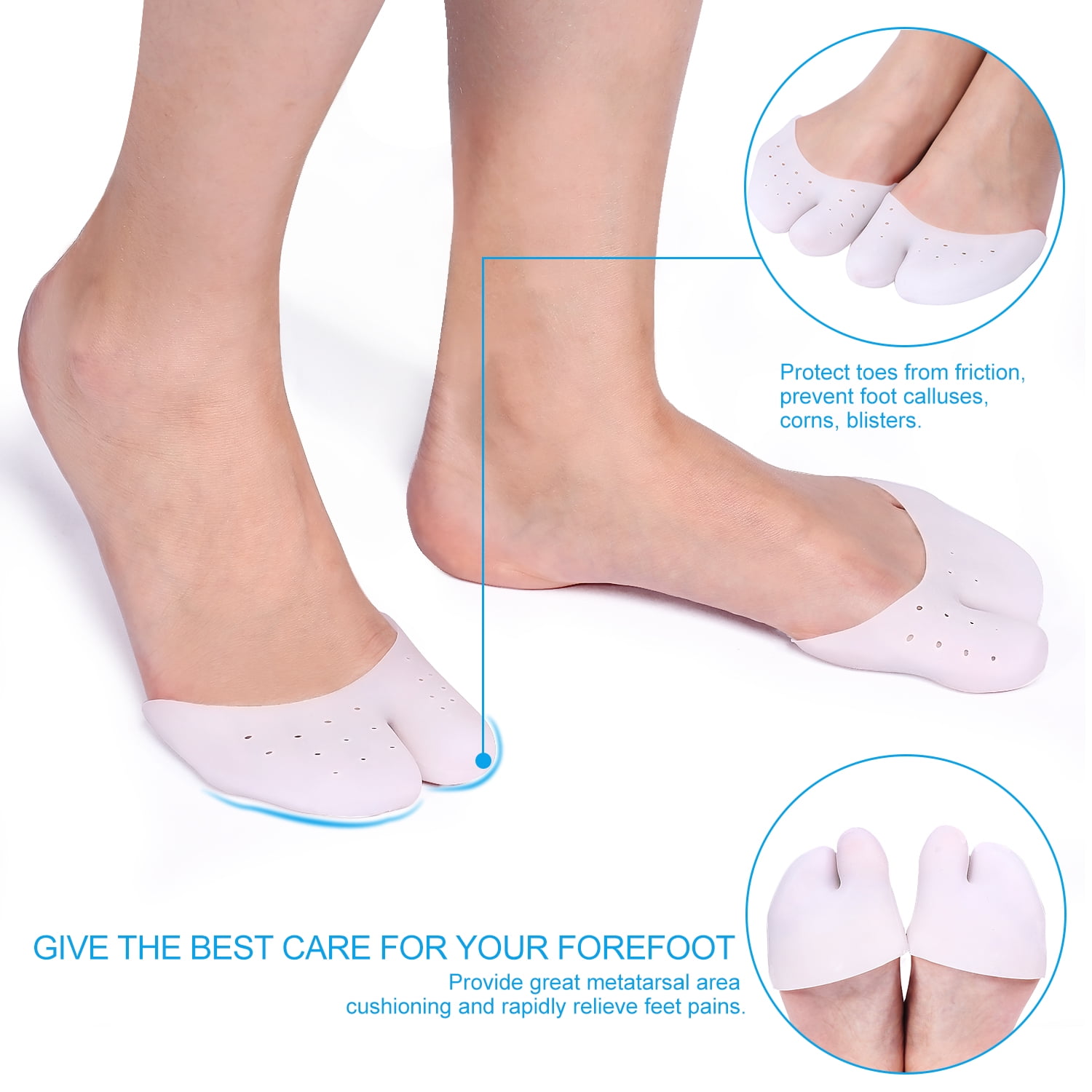 - Made of high quality durable -grade silicone gel, moist, comfortable and soft. One size fit most feet. According the structure of human feet to design the air holes , making your feet breathe freely and antiskid all the day.