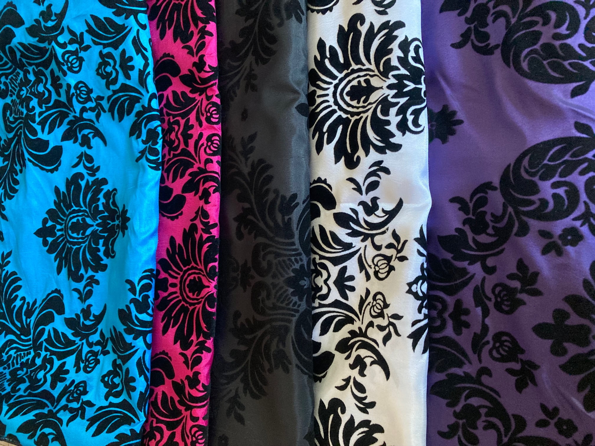 Lilly Craft Damask Taffetta is 100% polyester and is 58-60" wide, Fabric is sold by the yard, multiple quantities will be processed and shipped as ONE continuous piece.