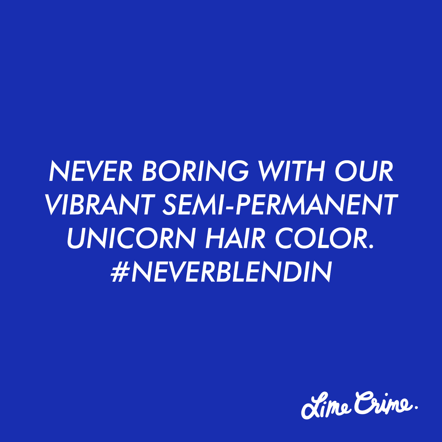For some serious fantasy color that is vegan and cruelty-free, look to Lime Crime. Lime Crime Unicorn Hair Full Coverage Dye is a damage-free, semi-permanent color dye that transforms hair into vibrant colors… all from the comfort of your own home! The Mystic Color Hair Dye produces an electric blue that will turn you into a real-life unicorn! Our Unicorn Hair Dye is an easy, DIY-friendly formula that contains conditioning ingredients, fatty acids, and vitamins that help boost shine and moisturize, and it’s totally free of harsh chemicals like PPD, Peroxide, and Ammonia. The sugary citrus vanilla scent will make your magical transformation a fun one, and you can mix and match our 35+ bold shades to create original hues just for you. The super-saturated pigment deposits vibrant color to pre-lightened platinum to medium blonde hair and adds a tint of color to dark blonde and light brown hair. Results may vary based on the color and condition of hair. Always do a patch and strand test before committing to your whole head.