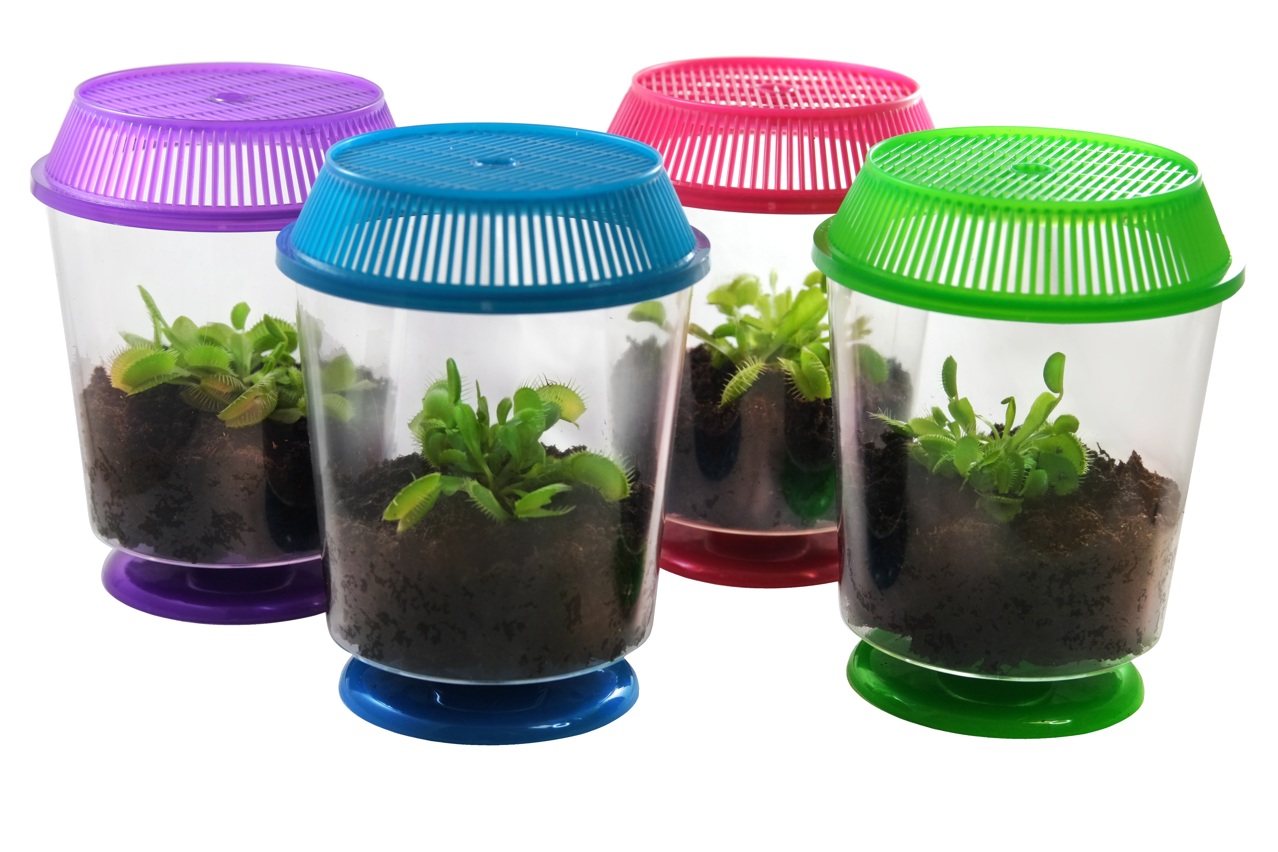 Visit Our Walmart Store- Nature Gift Store- For 100+ Nature Related Gift Items and Growing Kits! Live healthy adult sized Venus Flytrap Plant with a 4.5" diameter terrarium. Will have at least 3 traps on it, ready to gobble a bug! A death trap for insects! These plants trap their prey with a clever hair-trigger mechanism. Once trapped, they are slowly digested. Comes with an easy care sheet and set up for beginners. Growing to this size from seed takes almost 3 years, so this is a best seller compared to kits that come with seeds.Terrariums come an assortment of bright colors.