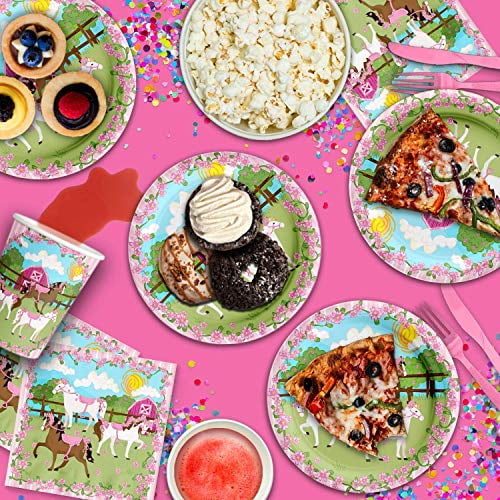 Lovely Pink Horse Birthday Party Supplies Set Plates Napkins Cups Tableware Kit for 16