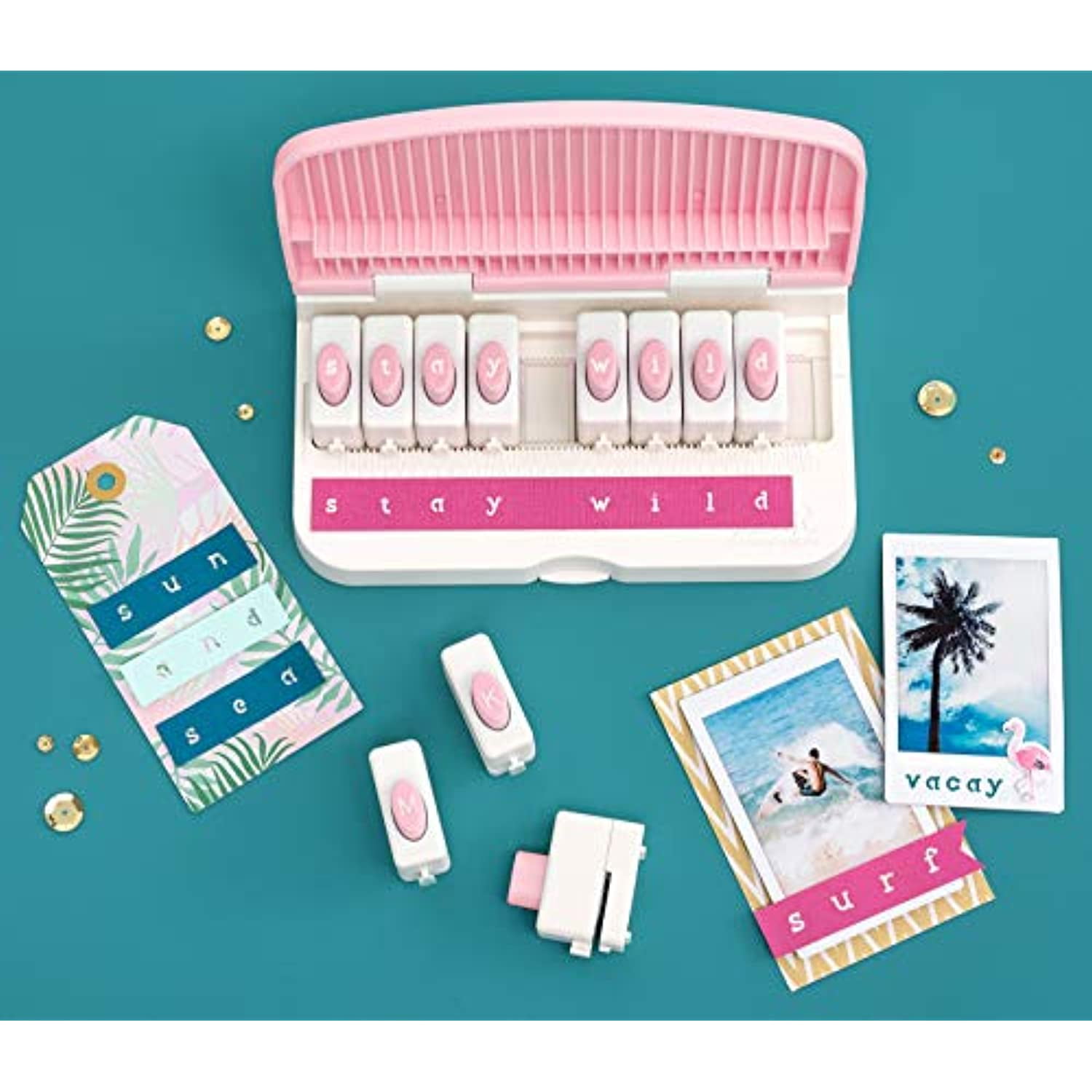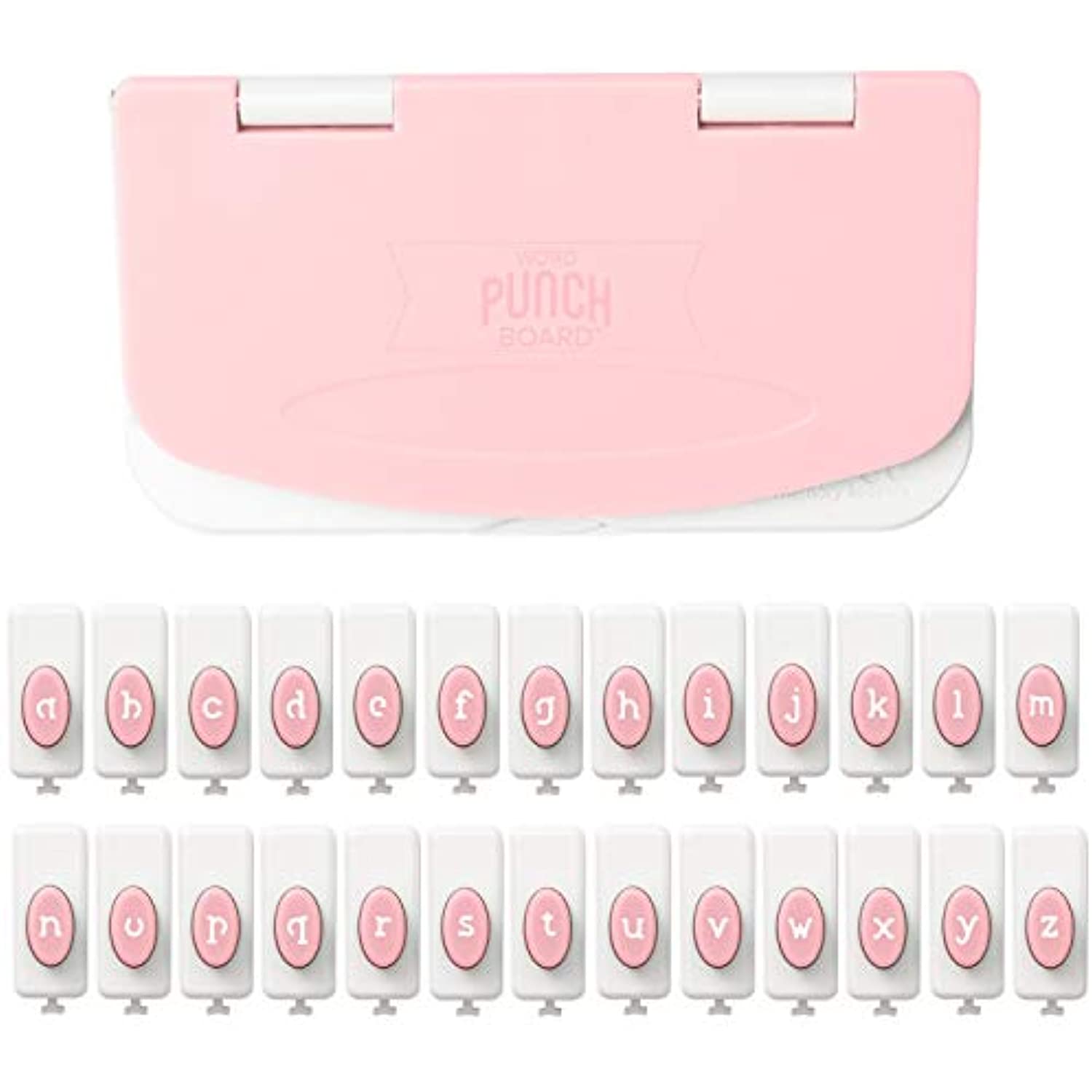 The Word Punch Board by We R Memory Keepers packs the perfect punch every time! Its unique design allows you to punch out letters and phrases for planners, journals, cards, and more without worrying about spacing and alignment. This package includes 26 letter punches in a new lower case style and font, and one Punch Board.