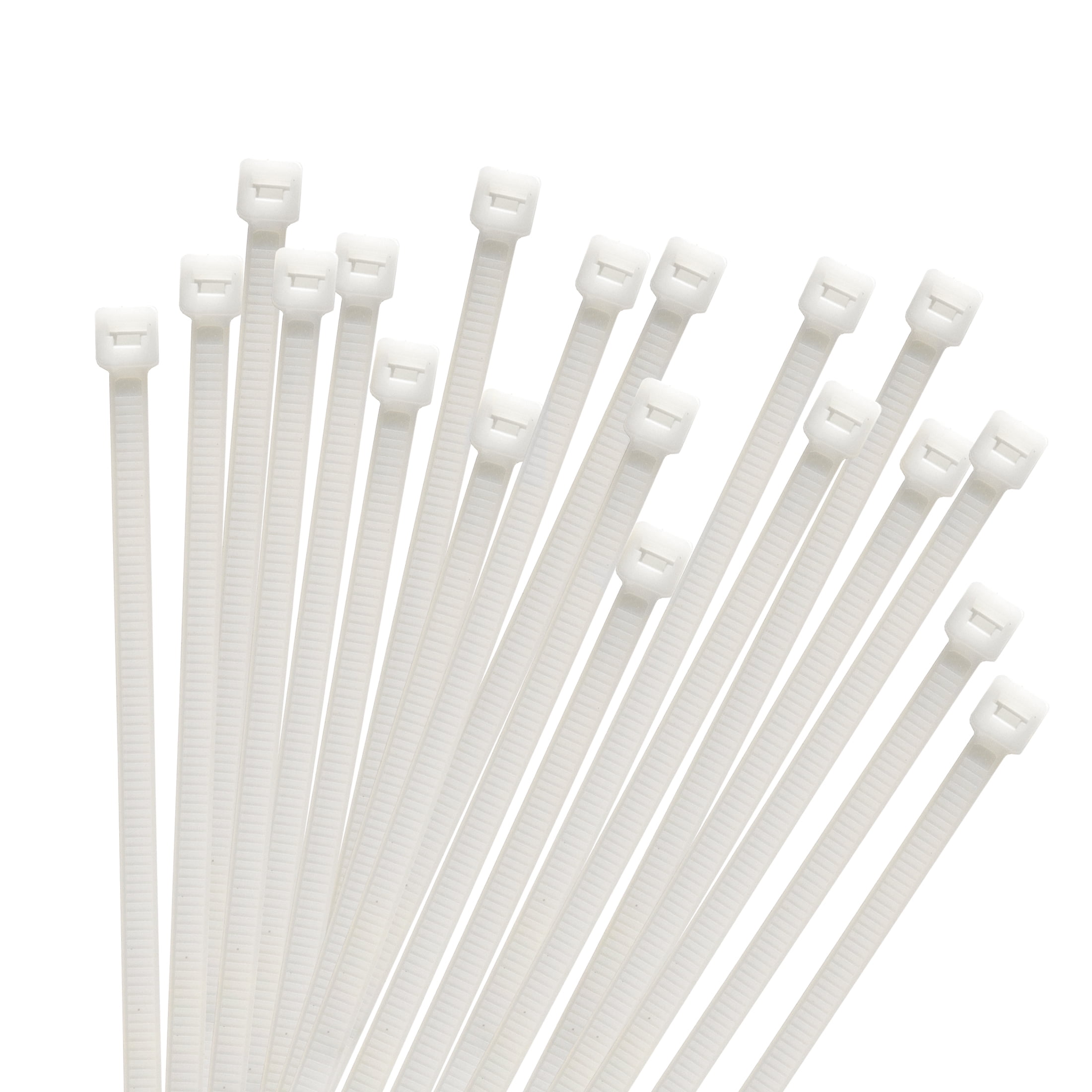Maxxima 12-inch white nylon cable ties lock tightly to secure cables and cords in place. These cable ties, also known as zip ties, allow for a clean and organized setup, which facilitates future maintenance. Featuring a minimum loop tensile strength of 50 lbs. these ultra-strong, heavy duty cable zip ties can be used in the most rugged of applications. They are also used for connecting, supporting, organizing, and bundling other large and small jobs. They are UL listed and sold in bags of 500 pieces.