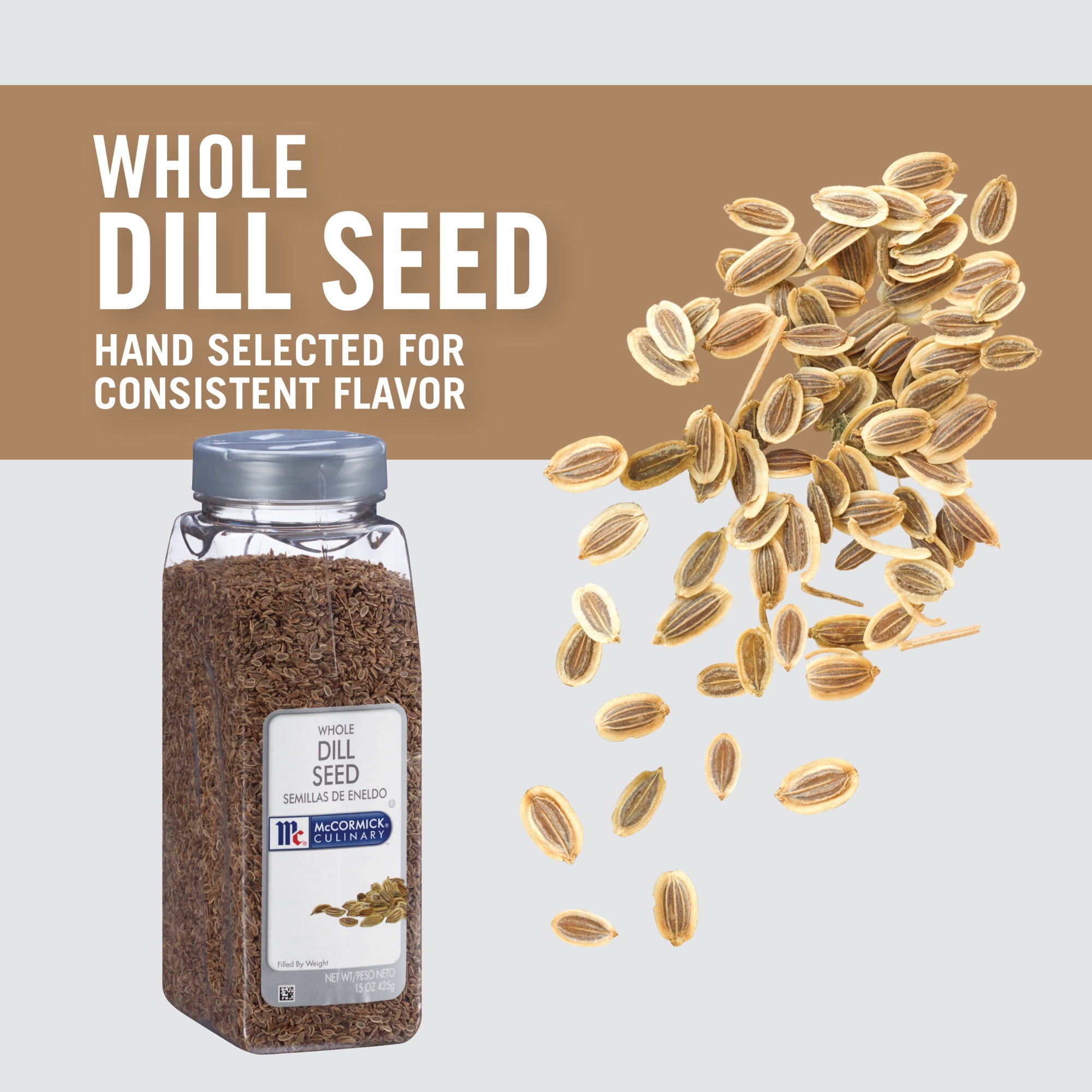 - HIGH QUALITY BLEND: Intensely aromatic, McCormick Culinary Whole Dill Seeds carry menthol flavor notes and are slightly more pungent than dill weed; dill seeds introduce a taste similar to caraway