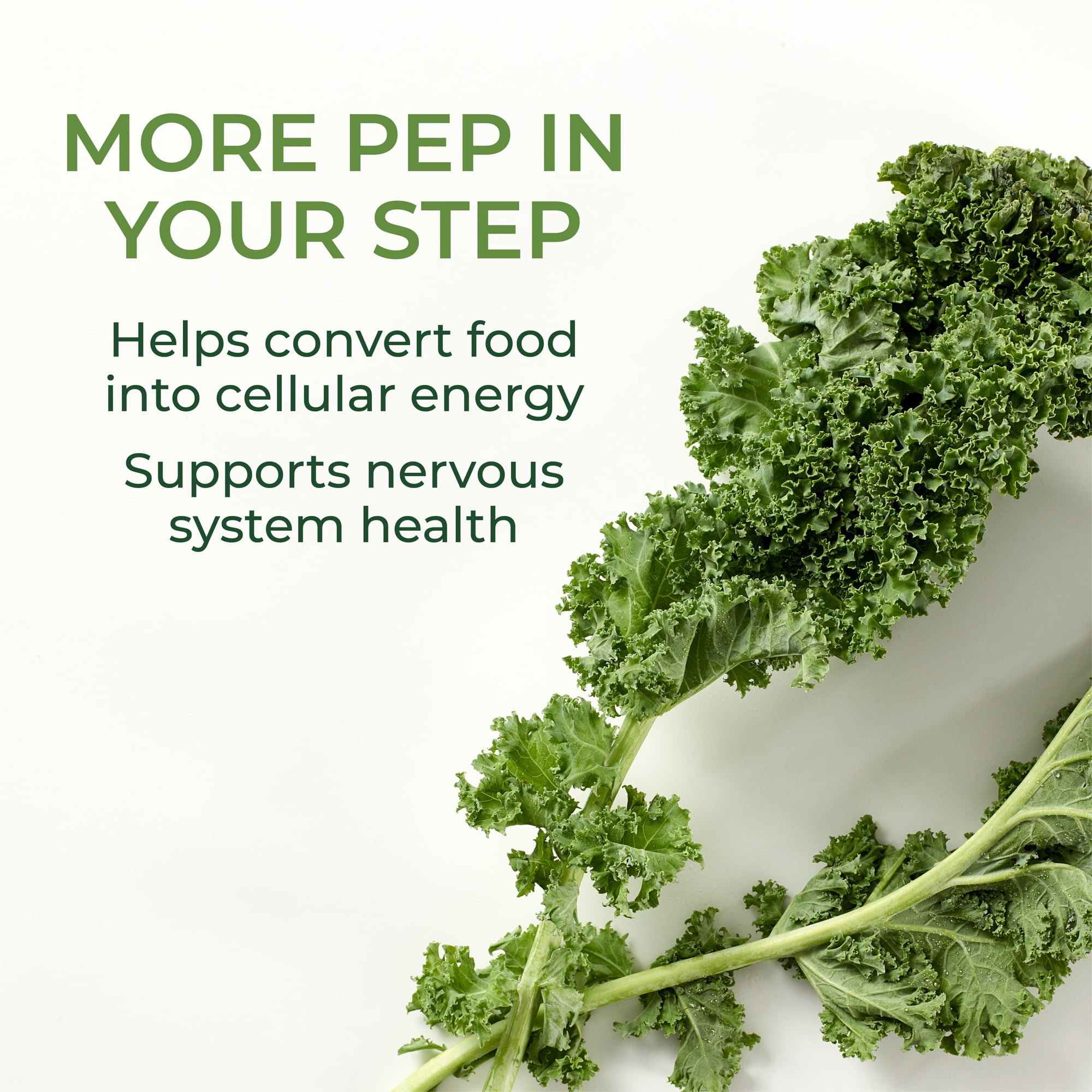 - Helps support cellular energy levels: A balanced ratio of B complex vitamins delivered with nourishing whole foods helps convert the food you eat into energy and support nervous system health
