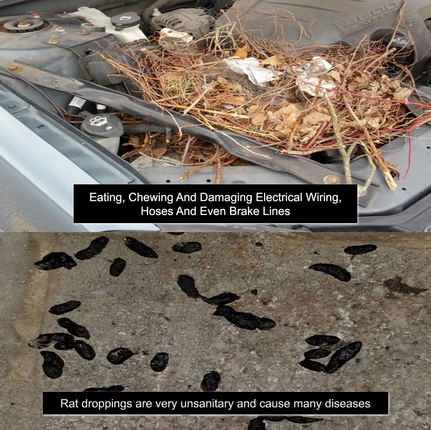- ✅ IMMEDIATELY ELIMINTATES ANIMAL & RODENT INFESTATIONS – Rodents Are Attracted To Engine Compartments And Inside Of Vehicles Because They Provide Warmth And Protection. Especially In The Winter. They Make Nests In Your Engine Compartments, Insulation And Headliners. Furthermore, They Leave Unsanitary Droppings Everywhere They Go. Stop Animals From Making You Vehicle Their Home.