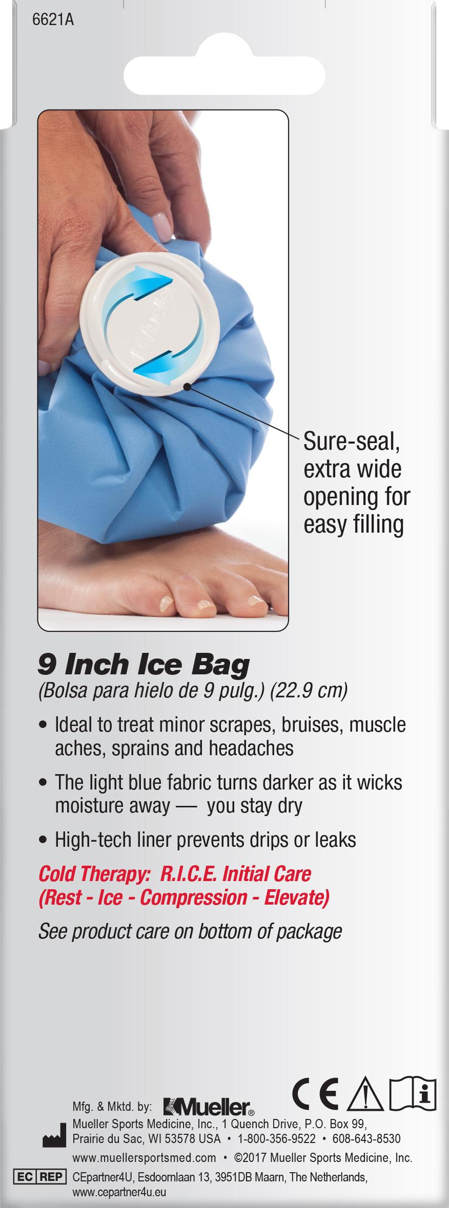 - Keep the Mueller Sport Care Medium 1 Quart 9" Ice Bag on hand at home and in your gym bag, so you are prepared in the event of an injury