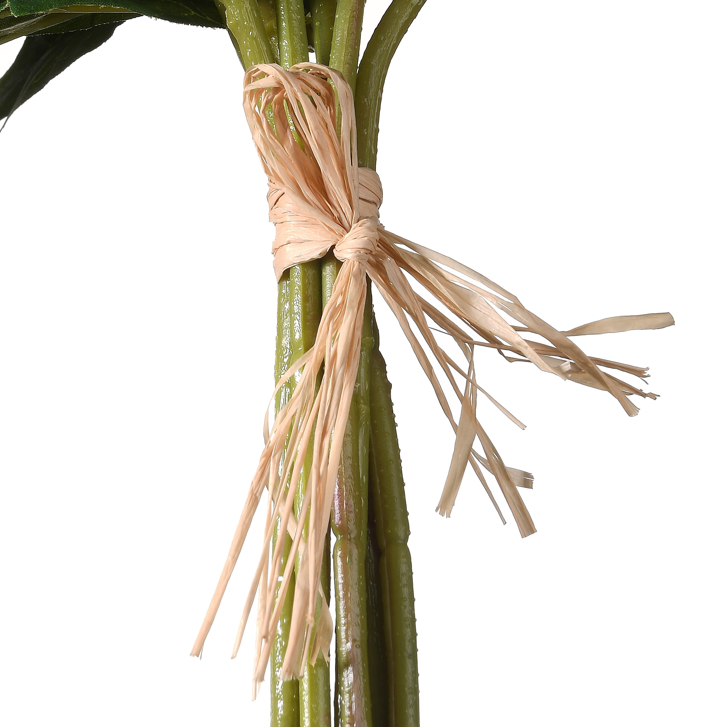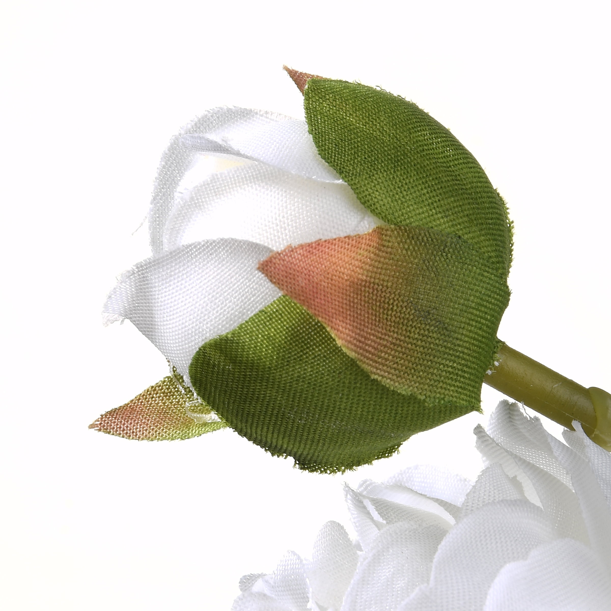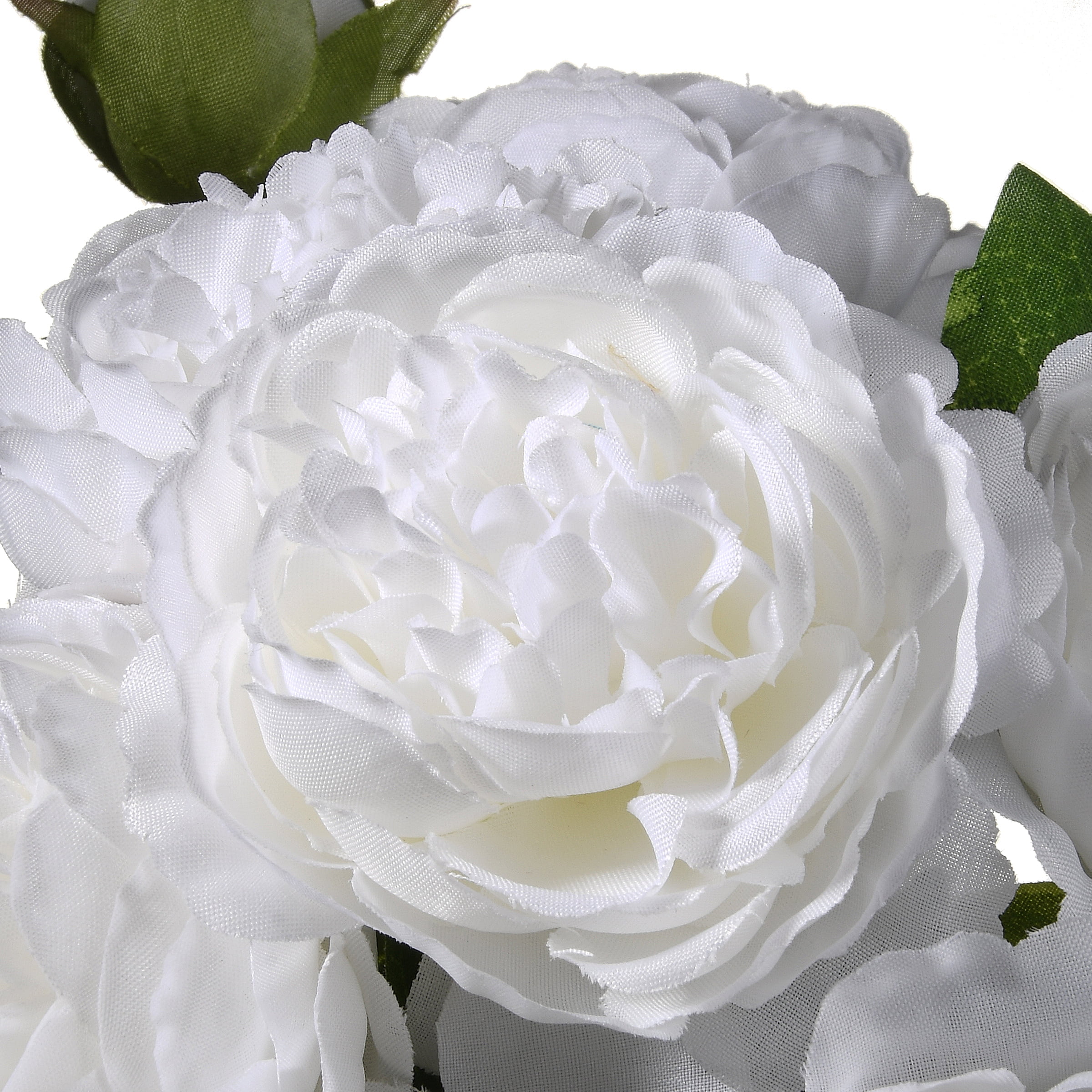 This bouquet features bright white peony flower blooms sitting on green leaves and long rigid stems. Insert these artificial flowers into a vase or planter to add a bright touch of color to your decorating scheme. A perfect trimming for welcoming the spring and summer seasons.
