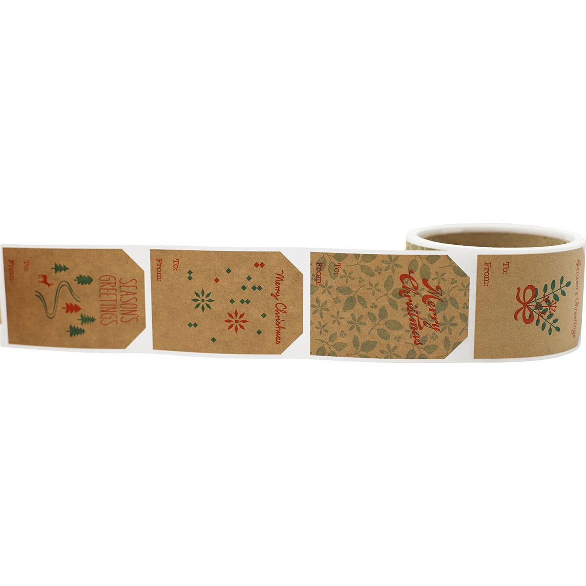 These simple home for the holiday gift tag stickers are the perfect label to address your packages. They are brown kraft paper which automatically brings a cozy feeling when using them. The simple designs on the labels are red and green, which match the Christmas holiday but could also be used for any holiday this season. All of the ink used on these labels is eco-friendly and water-based – so you can use them with confidence. There are four different designs on each roll – and 100 labels total. That means you get 25 of each design. The permanent adhesive is durable even in extreme temperatures. So, whether you celebrate your holidays in Florida or Utah, these stickers will stay stuck. They are also apparel safe, and they remove from clothing without leaving a residue. Each of the homes for the holiday gift tag stickers is 2 x 3-inches and die-cut to look like an actual gift tag. However, with these labels, you never have to worry about tying on a gift tag again. And, you can write on them before or after you stick them to the package, which would be difficult to do with a tie-on tag.